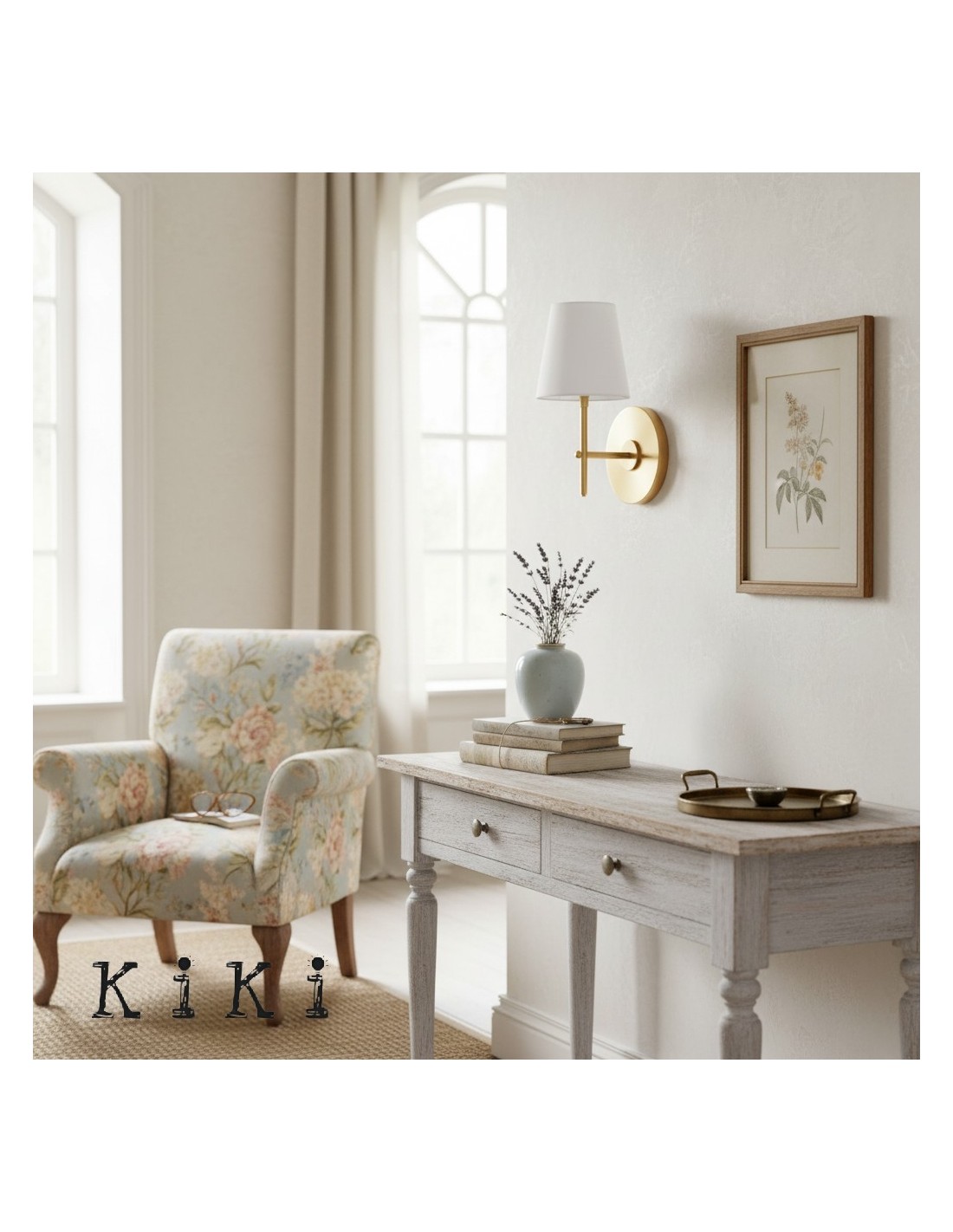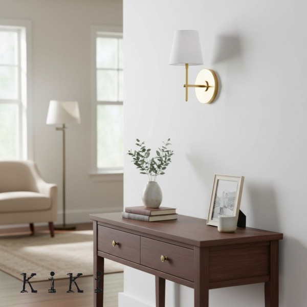 Apportez une touche d’élégance contemporaine à votre intérieur avec cette applique murale en fer doré. Son design simple mais raffiné associe une base dorée à une tulipe blanche en tissu polyester, diffusant une lumière douce et harmonieuse. Elle s’intègre parfaitement dans des espaces modernes — que ce soit un salon, une chambre, un couloir ou une entrée.
