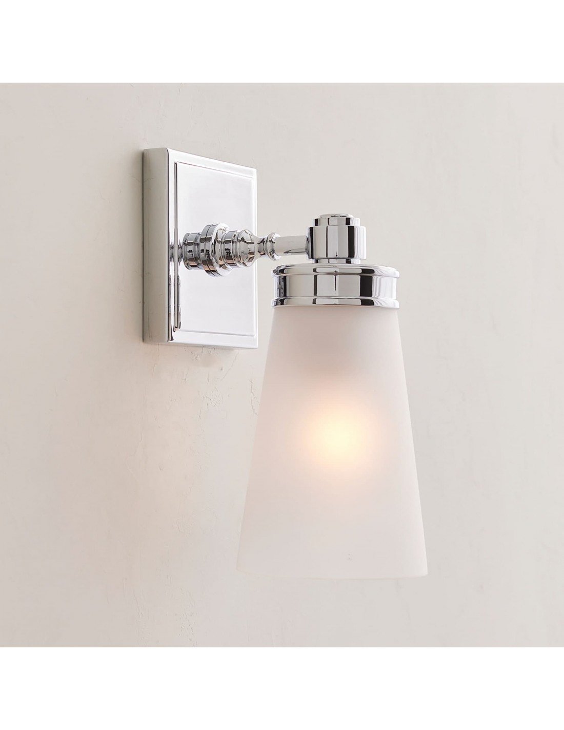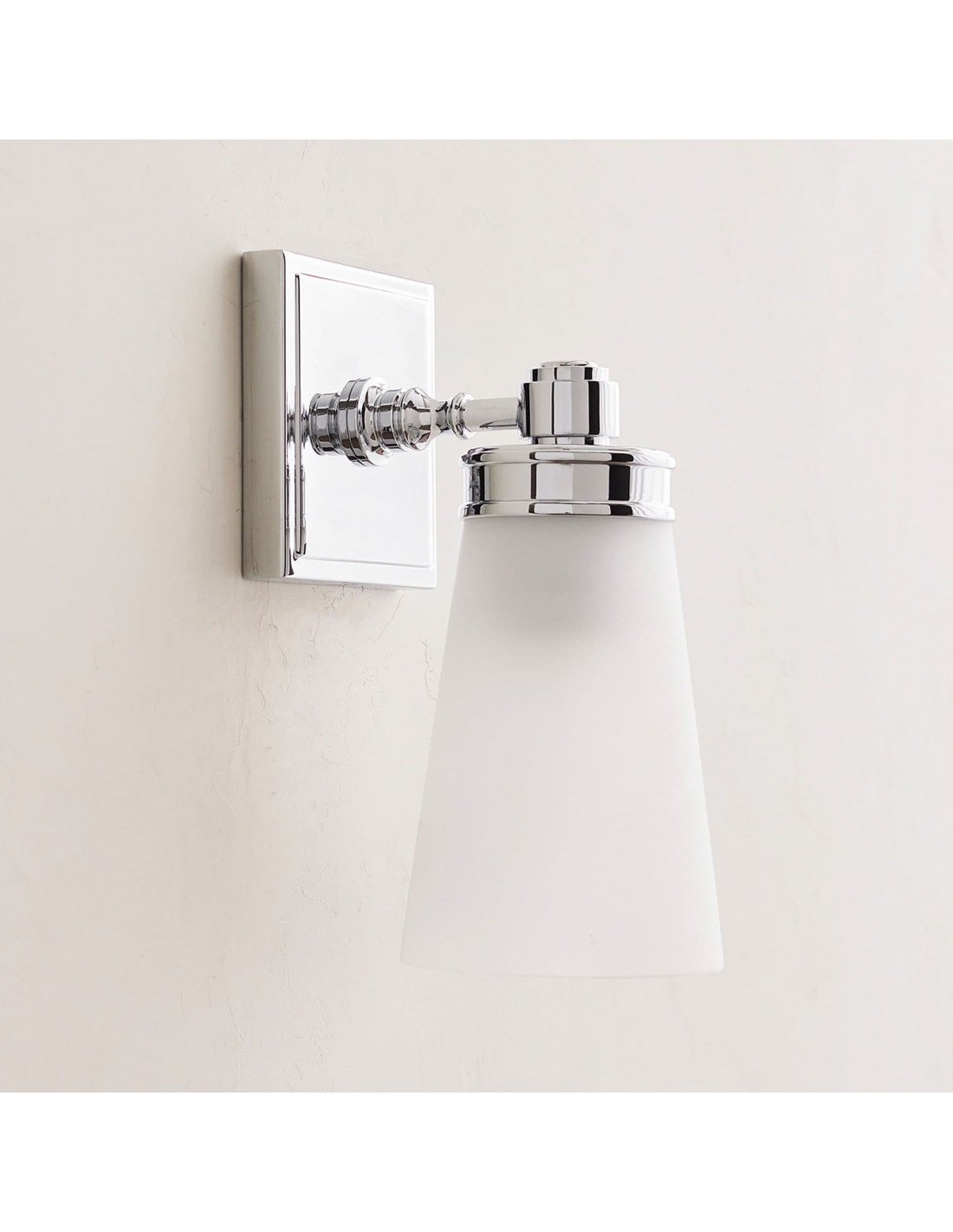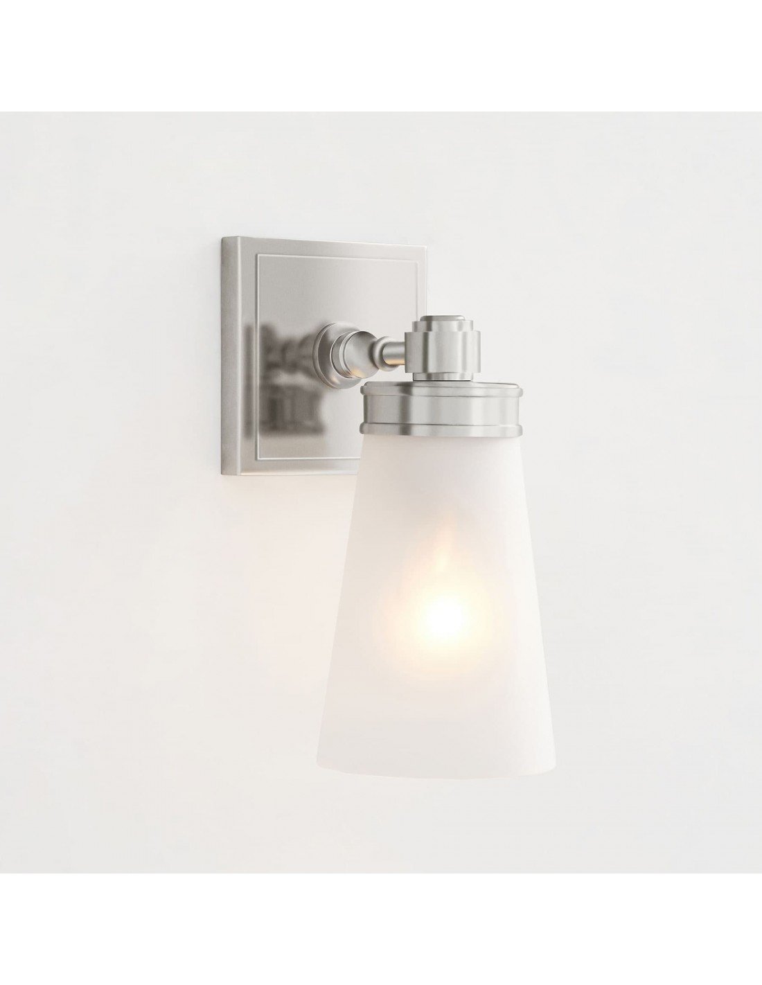 Applique murale moderne en alliage de zinc résistant avec abat-jour en verre soufflé. Choisissez parmi quatre finitions intemporelles : chrome, nickel satiné, laiton vieilli et noir mat. Idéale pour une salle de bain, un couloir ou une chambre, cette applique apporte élégance et polyvalence à tous les espaces.