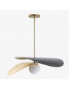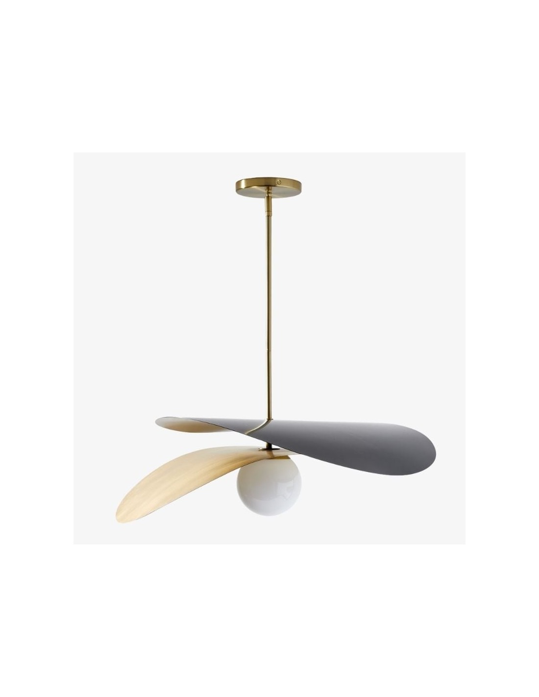 Découvrez le design novateur de la suspension Tynora. Cette pièce maîtresse associe des abat-jour ultra-modernes suspendus au-dessus d'un globe en verre transparent, le tout sublimé par de multiples finitions métalliques élégantes qui créent une dimension captivante.