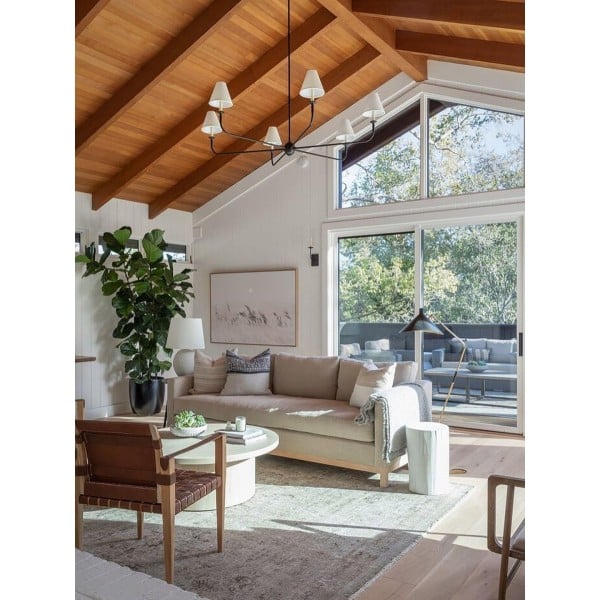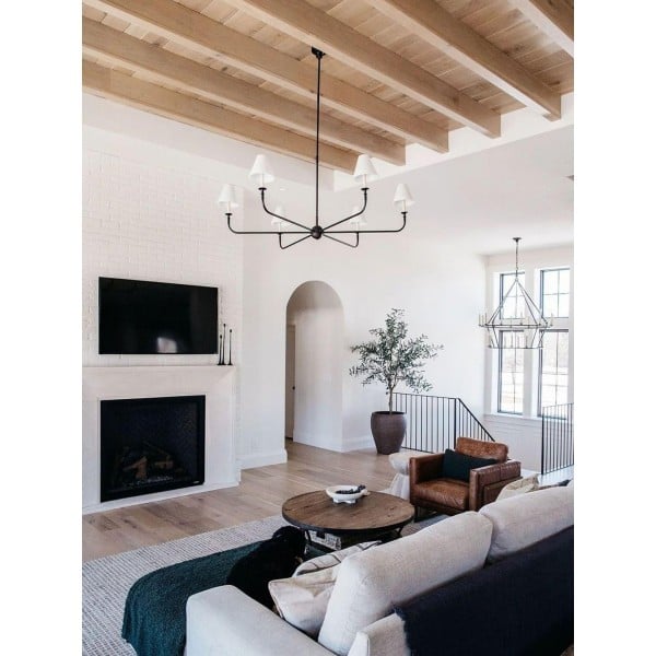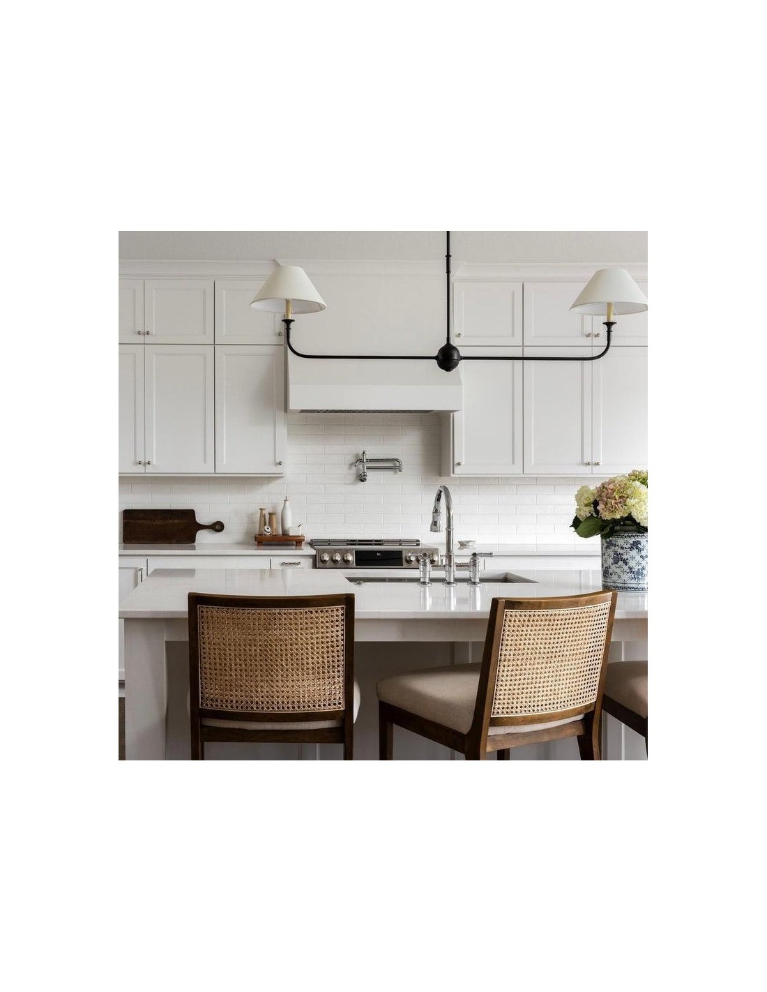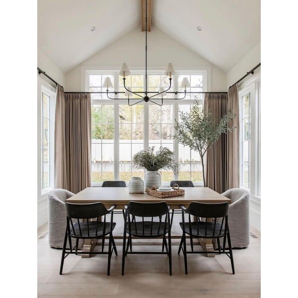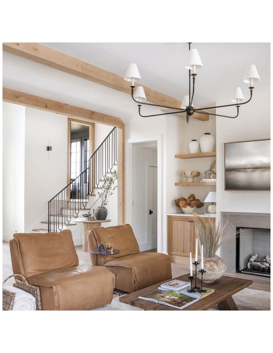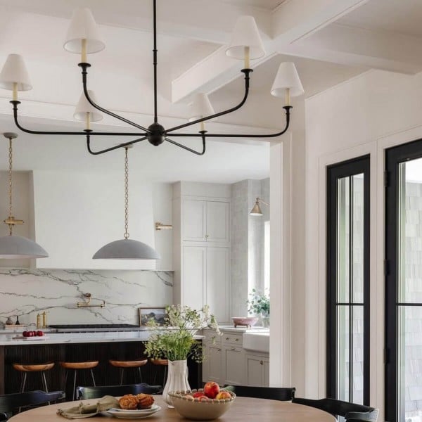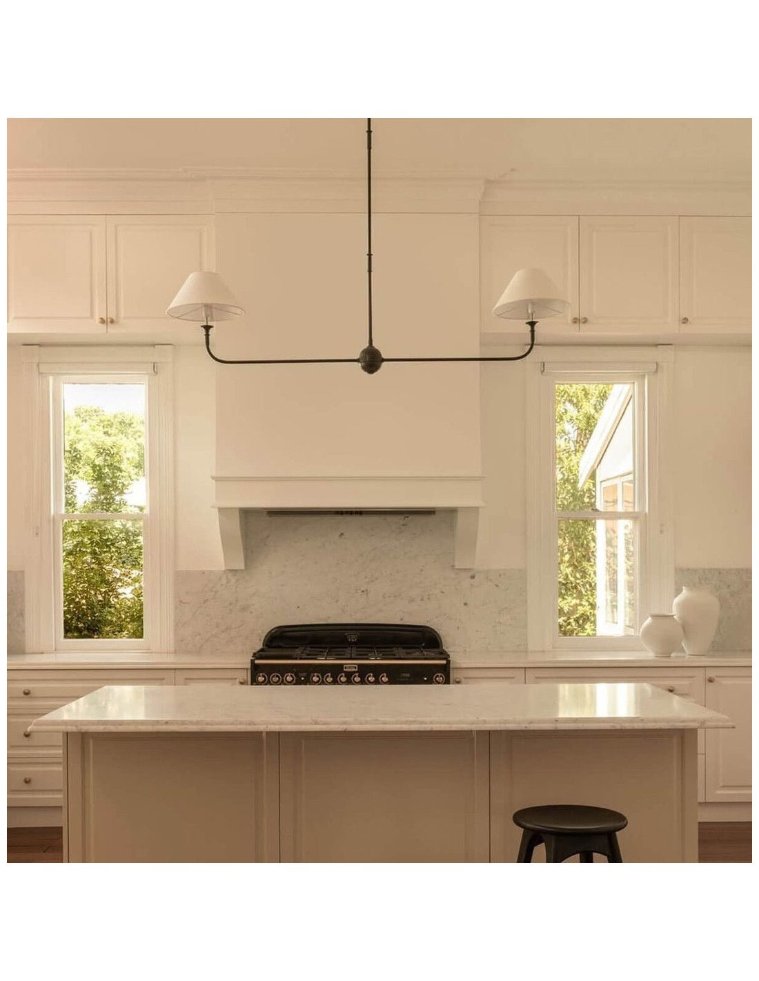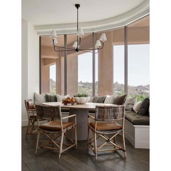 Le lustre Piaf Grande allie le charme moderne du milieu du siècle à une élégance intemporelle, offrant un confort visuel optimal. Ses élégants motifs de bougies et ses abat-jour fuselés en tissu rehaussent le confort visuel.