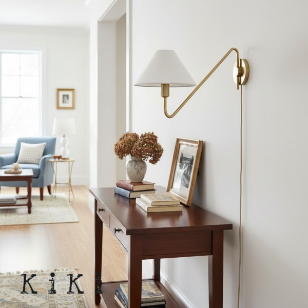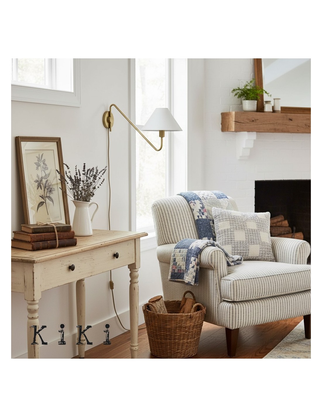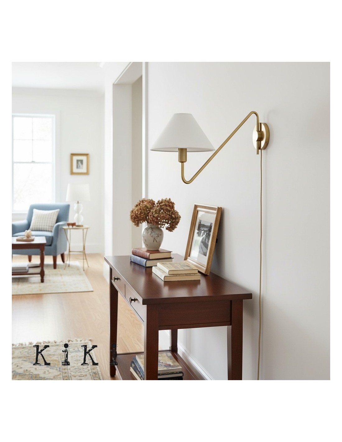 L'applique murale Beatrix allie élégance et fonctionnalité avec son design pivotant unique. Sa structure en métal fini bronze champagne et son abat-jour en lin blanc offrent une lumière douce et chaleureuse, idéale pour les espaces modernes. Le bras articulé permet un éclairage directionnel précis, parfait pour les salons, chambres ou couloirs. Sa conception avec prise intégrée facilite l'installation sans nécessiter de câblage complexe.