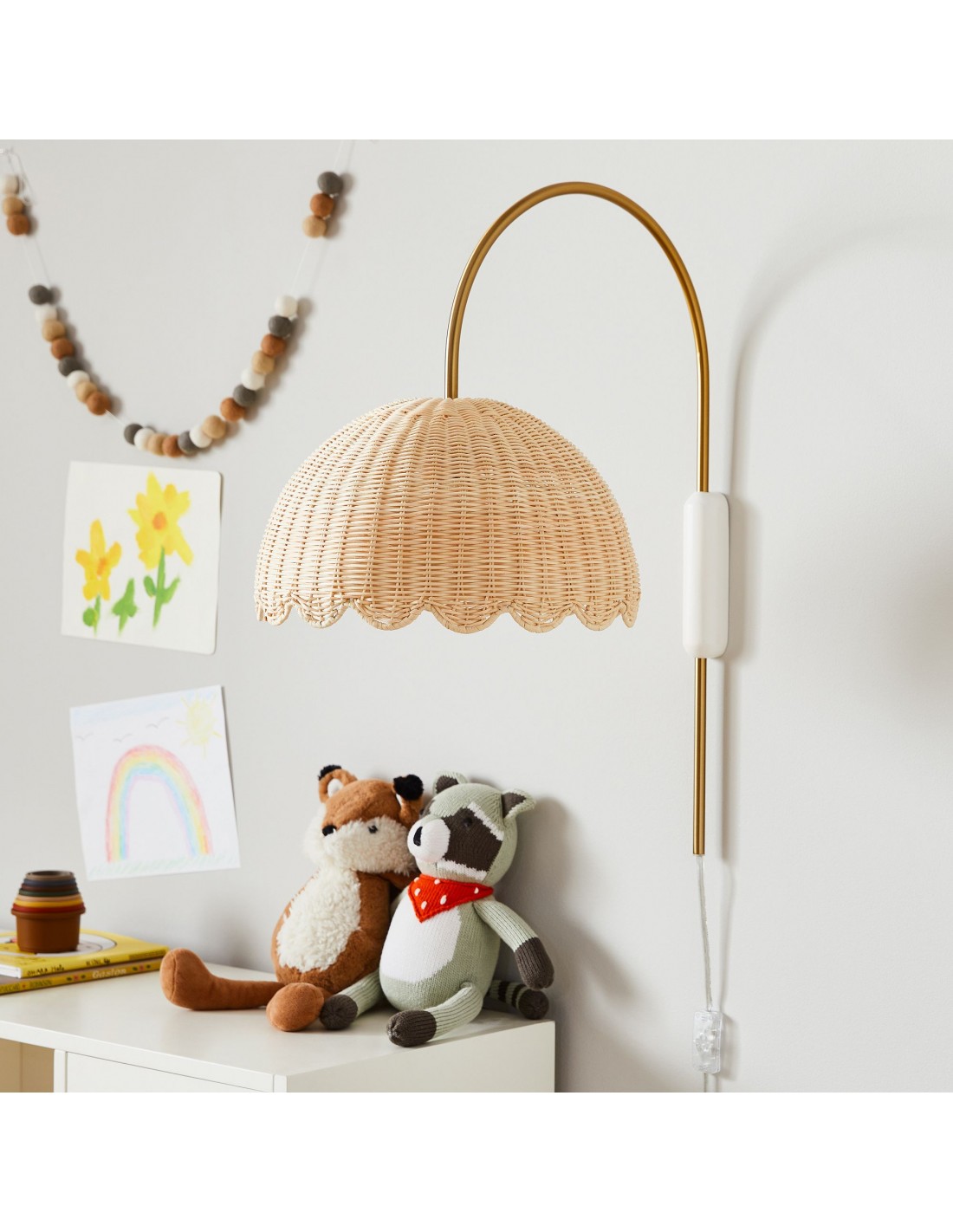 Applique murale en rotin festonné Olvara - Lampe murale fantaisie pour chambre d'enfant KL1224