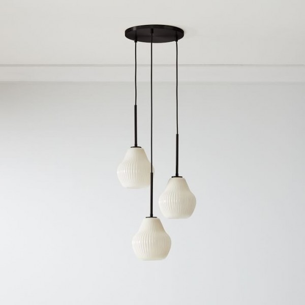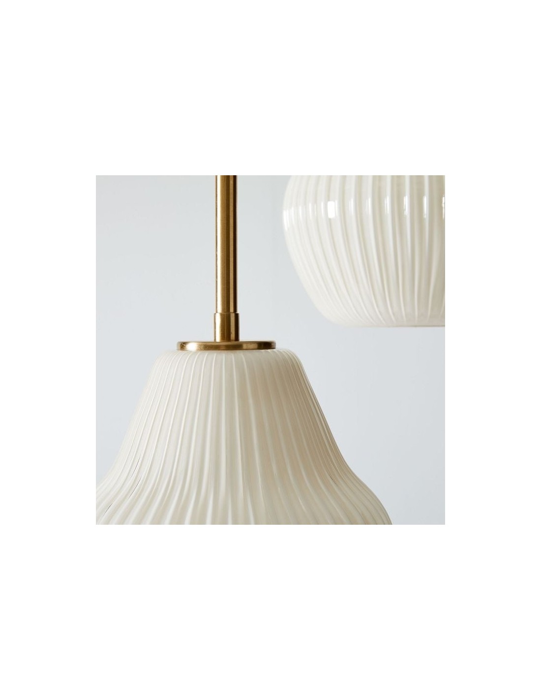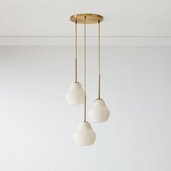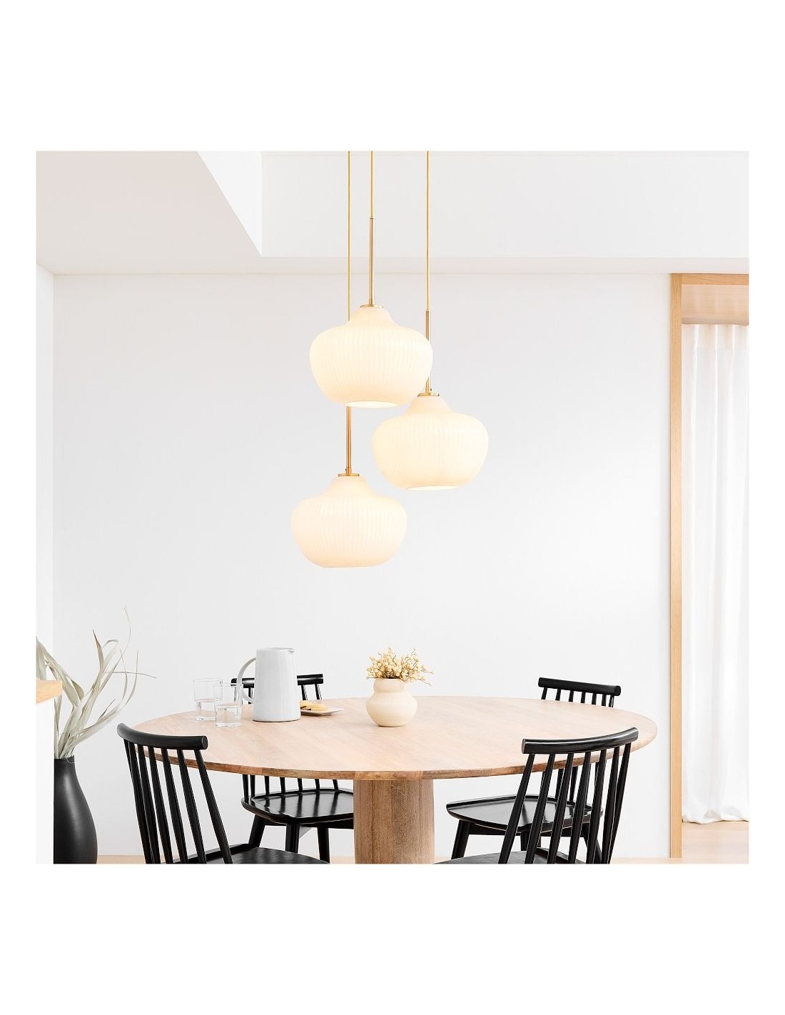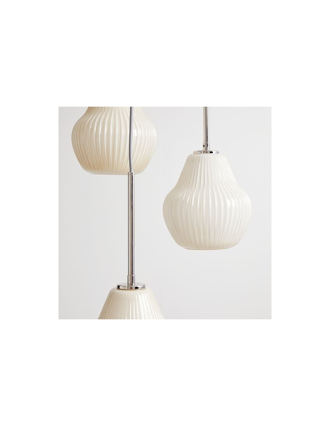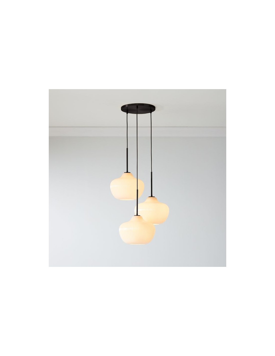 Le lustre à 3 lumières en verre strié offre une esthétique sculpturale et moderne. Ses abat-jour en verre cannelé diffusent une lumière chaleureuse et ambiante dans les couloirs, les salles à manger ou les entrées. Idéal comme lustre d'exception, il allie design artistique et fonctionnalité polyvalente pour des intérieurs élégants.