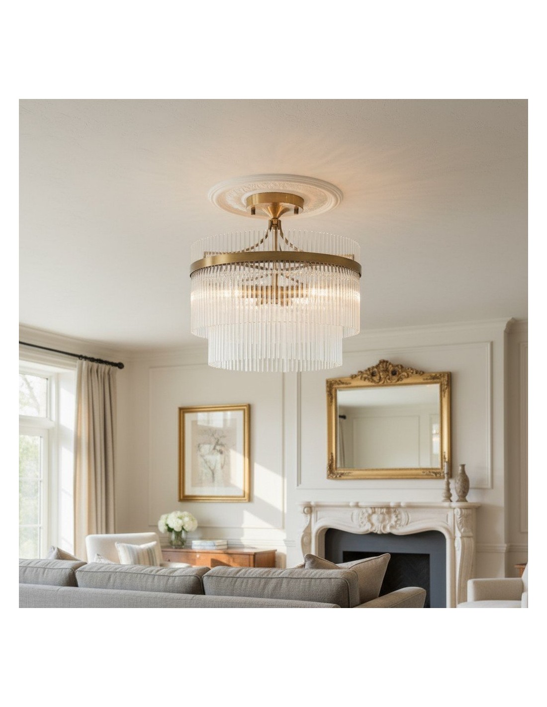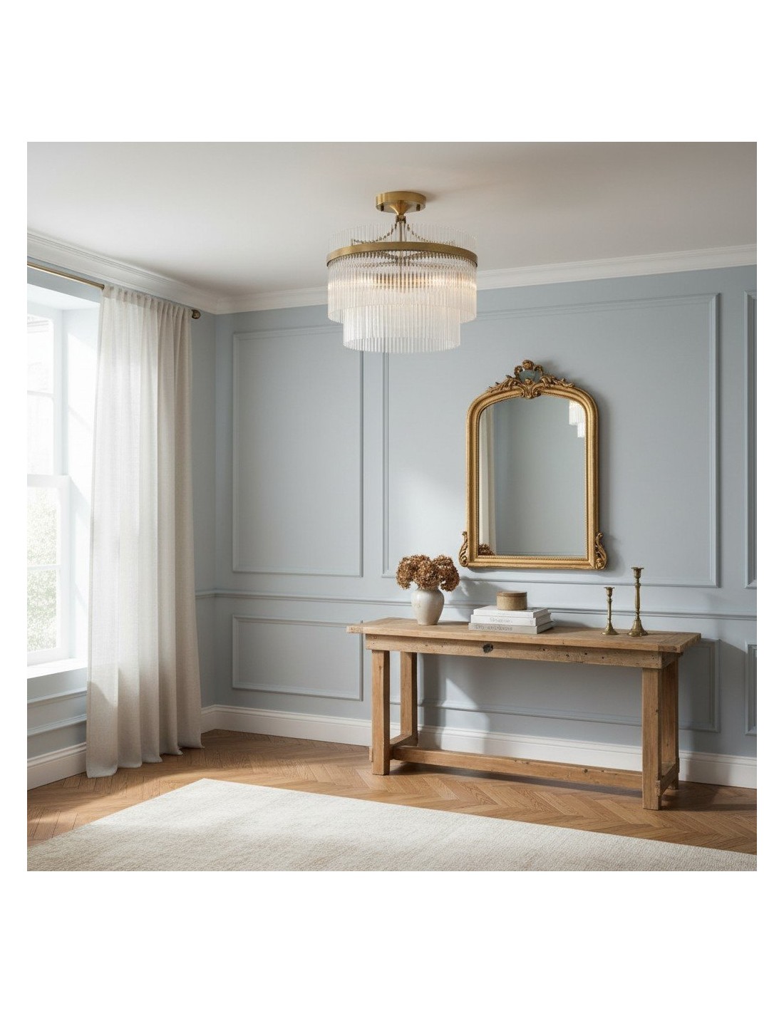 Le plafonnier semi-encastré RibGlow à 3 lumières allie une élégante simplicité à des détails raffinés. Sa structure en laiton vieilli entoure trois ampoules, dont la lumière douce est diffusée par des tiges de verre transparent, créant ainsi une ambiance chaleureuse. Compact et sophistiqué, il convient aux plafonds bas et est idéal pour les couloirs, les chambres, les salles à manger ou les pièces à vivre.