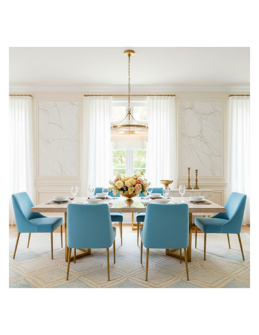 La suspension RibGlow se distingue par son élégante structure métallique associée à de fines tiges de verre, créant ainsi un luminaire à trois sources lumineuses à la fois sculptural et raffiné. Idéale pour les salles à manger, les cuisines, les salons ou les entrées, elle offre un éclairage chaleureux et une esthétique moderne et élégante.