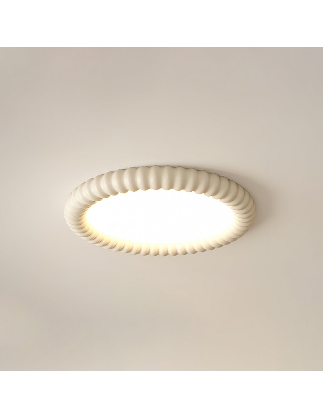 Le plafonnier à anneau ondulé de style crème s'inspire des douces ondulations de l'eau, capturées dans une forme circulaire qui émet une lueur douce et diffuse. La texture nervurée le long du périmètre évoque l'image d'un étang serein avec des ondulations s'étendant vers l'extérieur, symbolisant la tranquillité et l'harmonie.