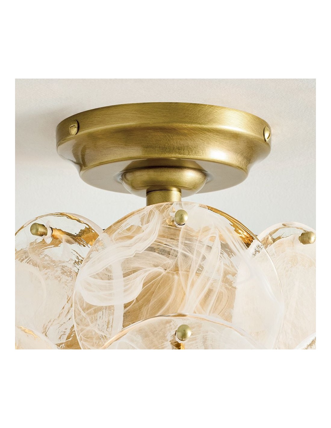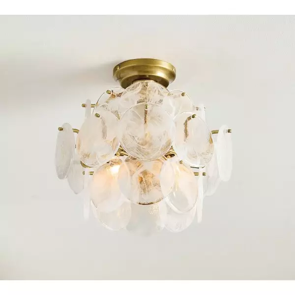 Sublimez votre intérieur avec le plafonnier rond Cascade Glass Disc. Doté d'une structure en métal robuste et d'une finition laiton vintage, ce plafonnier polyvalent convient parfaitement aux chambres, couloirs et salles de bains. Compatible avec les variateurs d'intensité pour une ambiance personnalisée dans les espaces couverts.