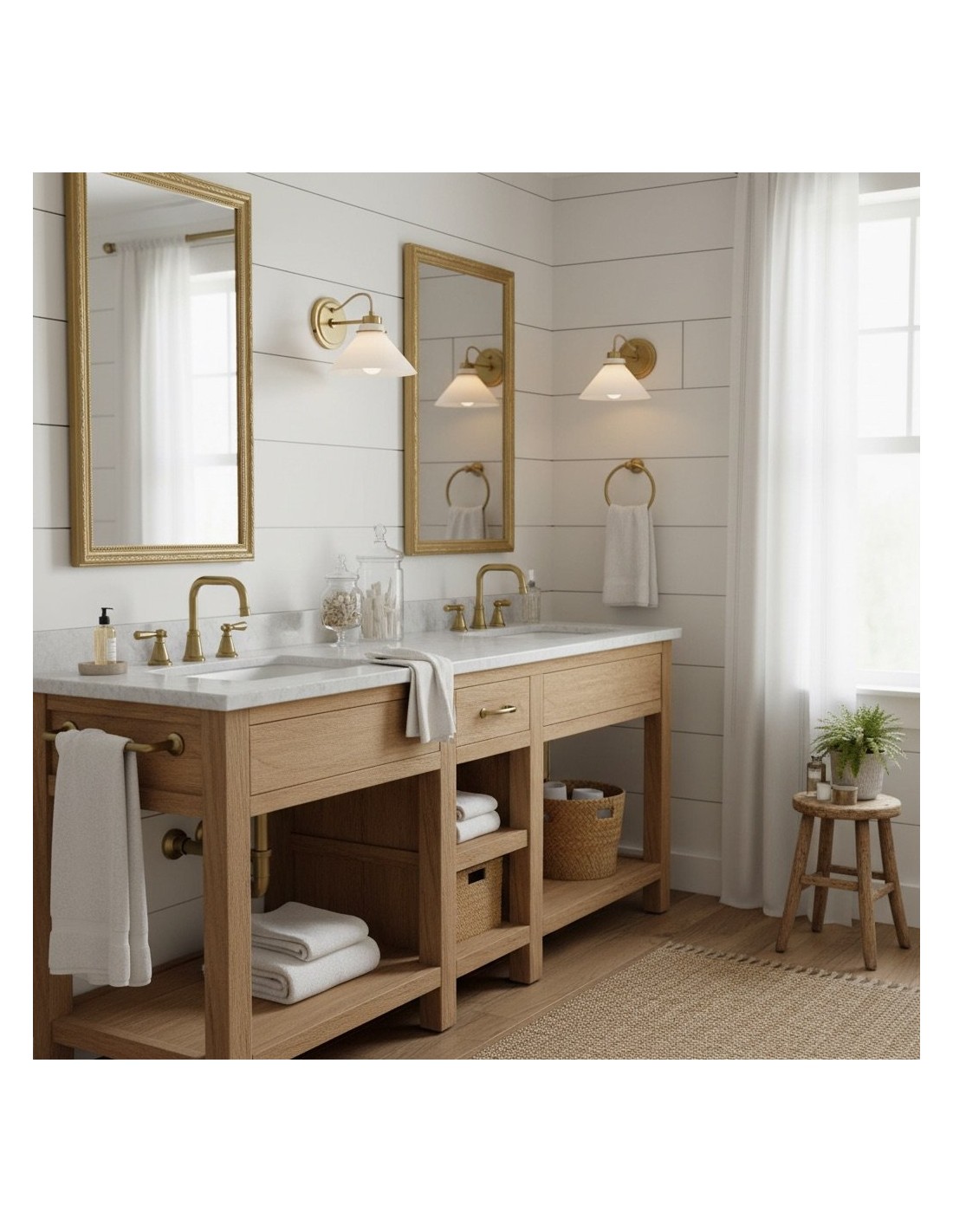 - Abat-jour en verre couleur Lait ou abat-jour en métal couleur Ivoire ou Bronze Champagne.
