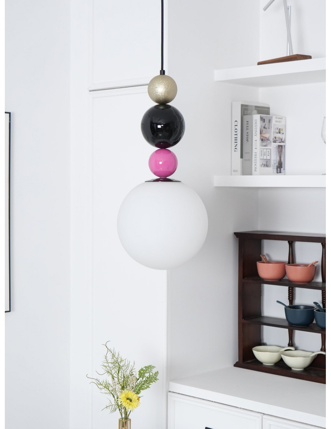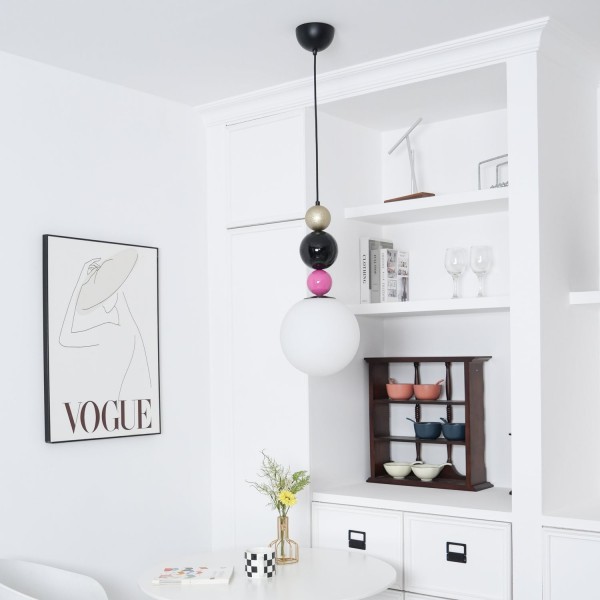 Accueillez la lampe suspendue empilable à boules rondes rose unique et élégante dans votre espace intérieur. Fabriquée avec des matériaux en métal et en verre de haute qualité, son design accrocheur offre un éclairage brillant. Ajoutez une ambiance moderne et élégante tout en garantissant durabilité et stabilité.
