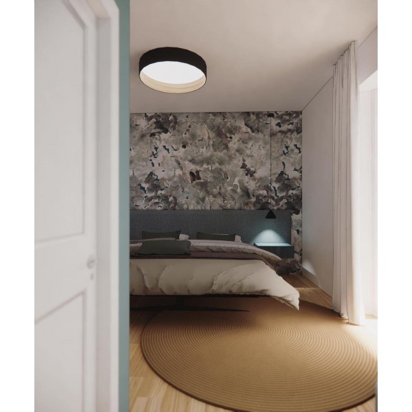 Le plafonnier LED rond minimaliste japonais Creative Wood Grain est un plafonnier avec installation en surface où l'aspect chaleureux naturel du bois de chêne à l'intérieur est combiné au raffinement technique de l'enveloppe métallique en aluminium à l'extérieur. C'est une lampe de contrastes, qui s'intègre naturellement dans tous types d'environnements.