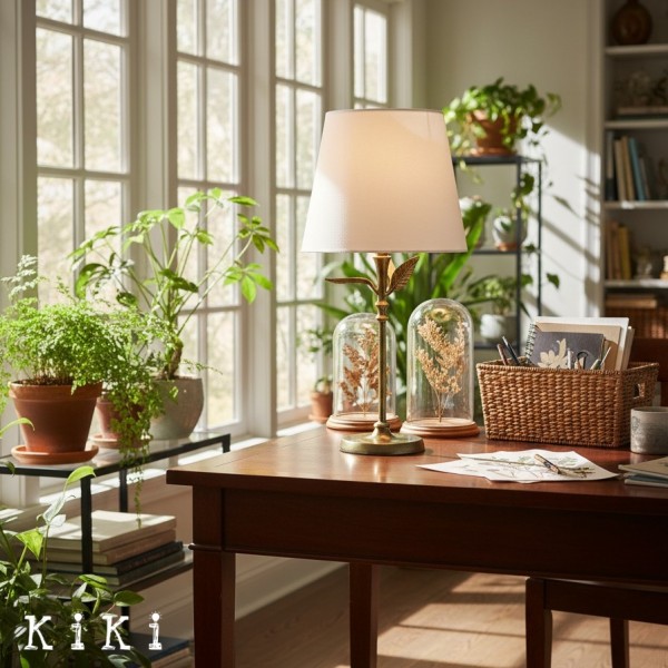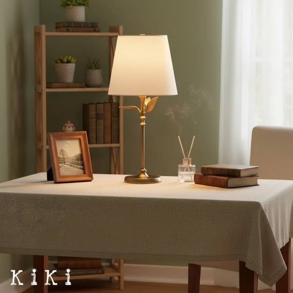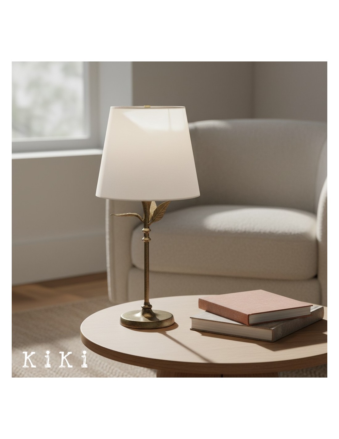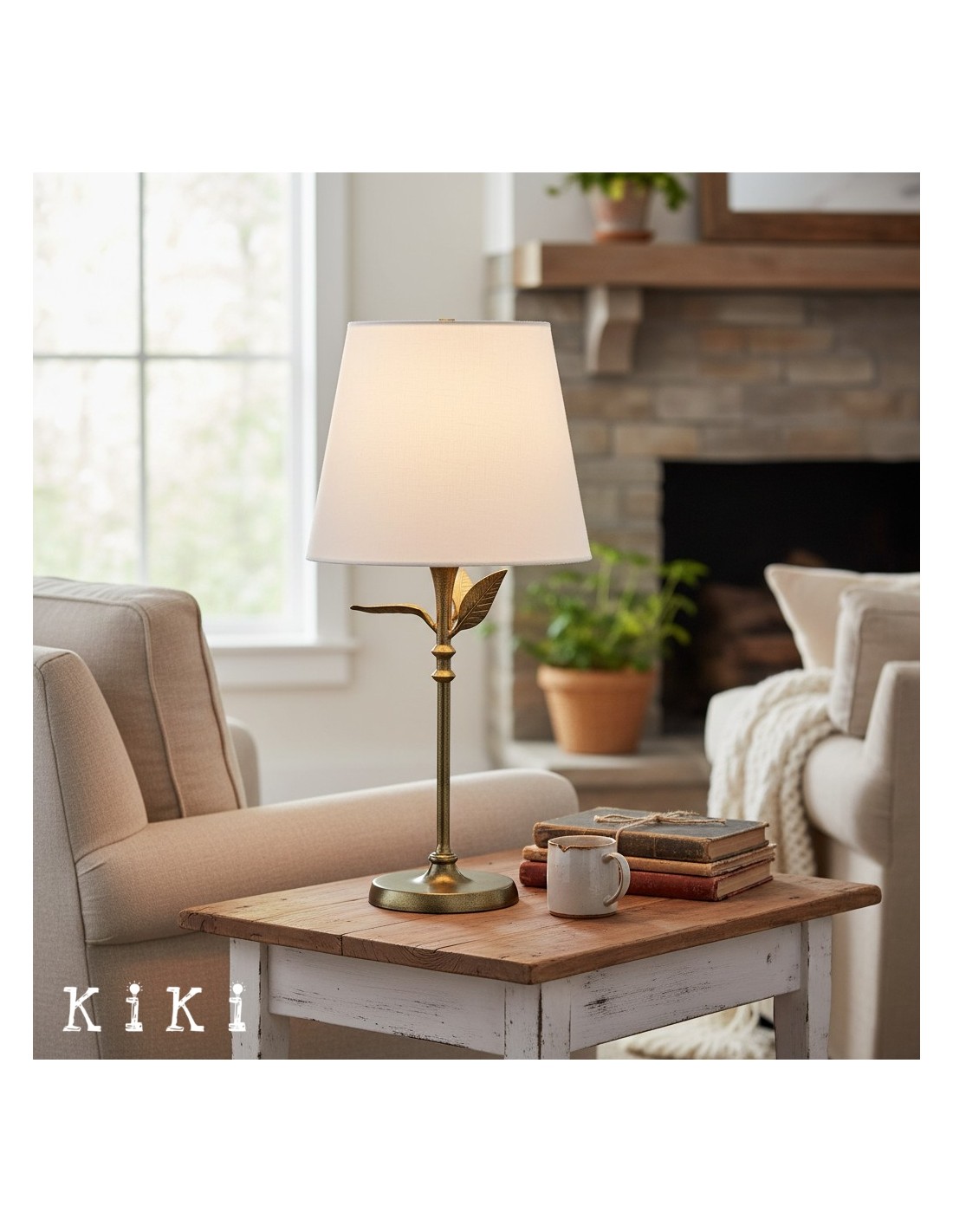 La lampe de table Roven de style vintage se distingue par son design sculptural inspiré de la botanique et son travail du métal à l aspect forgé. Sa base décorative présente des motifs végétaux en relief qui apportent profondeur visuelle et caractère artistique, tandis que l abat-jour en tissu diffuse une lumière douce et enveloppante, idéale pour créer une atmosphère chaleureuse.
