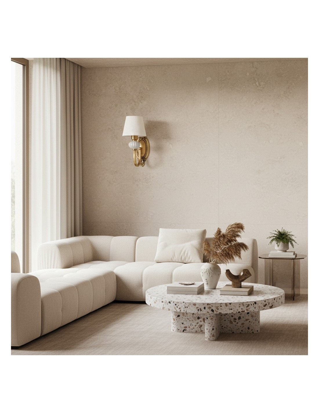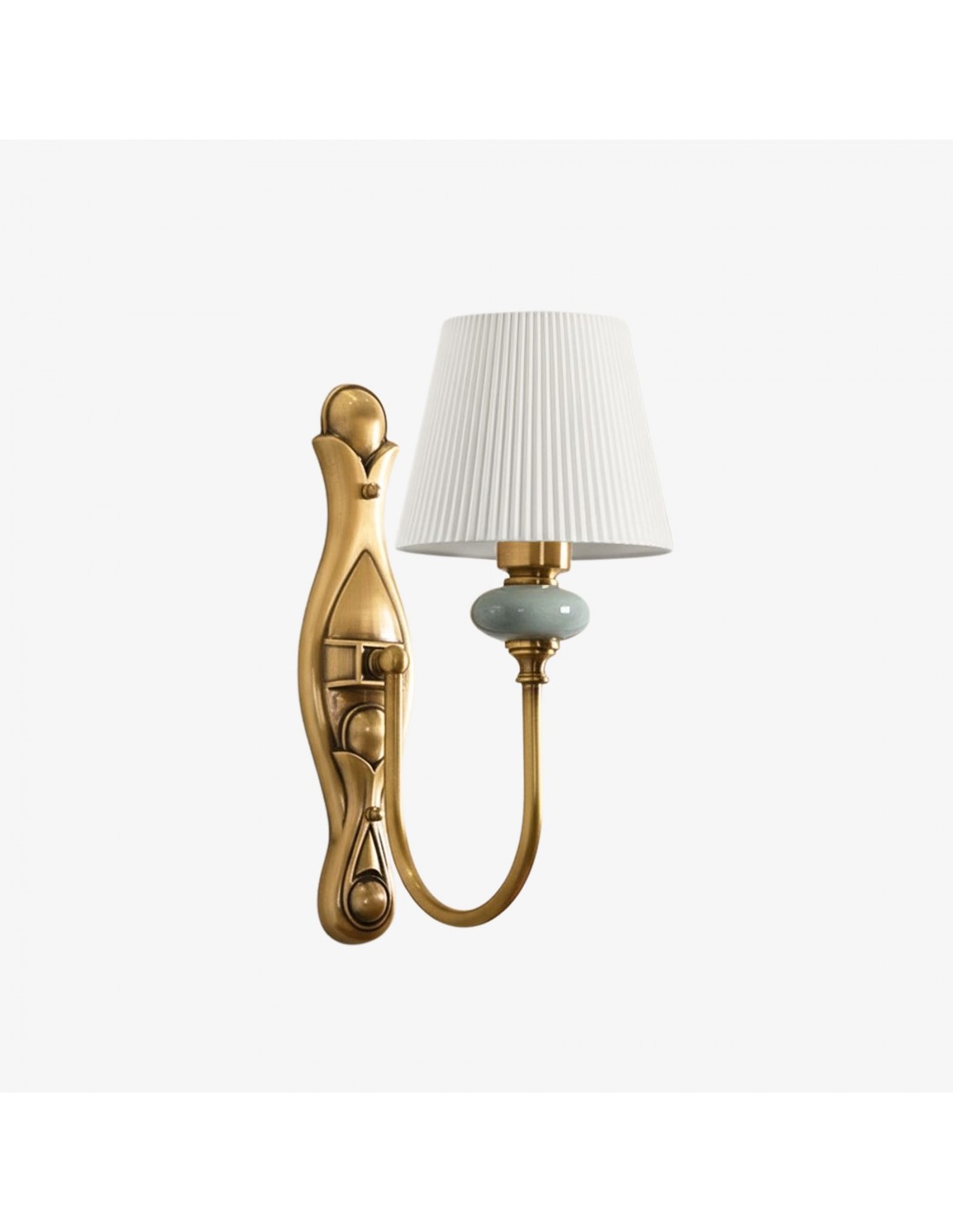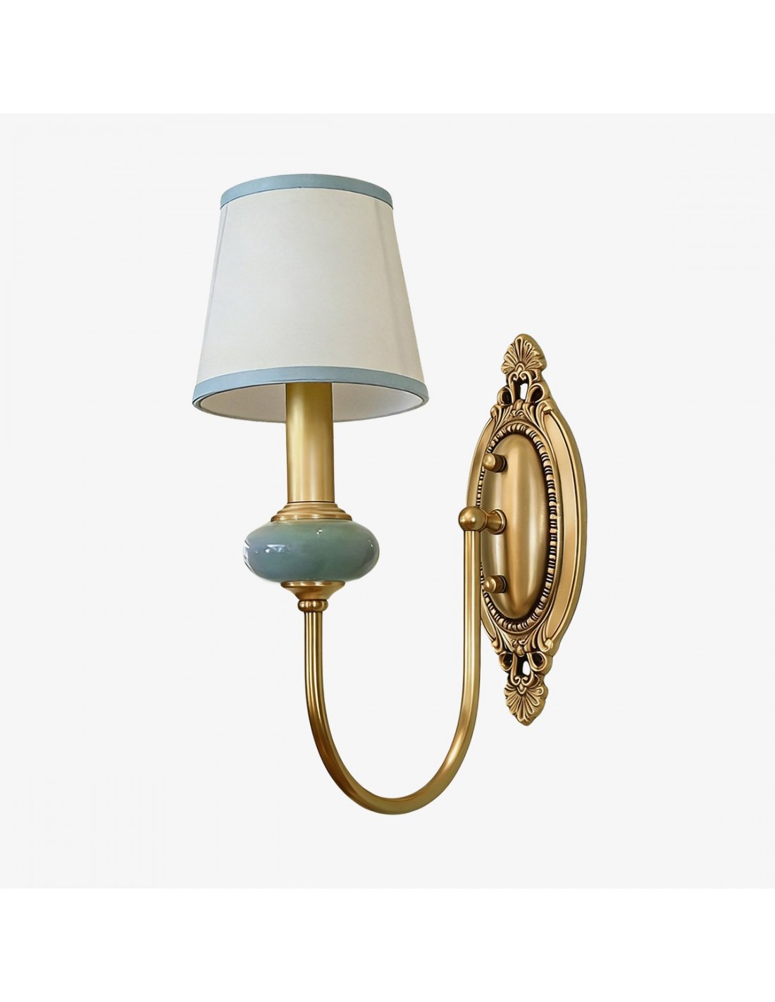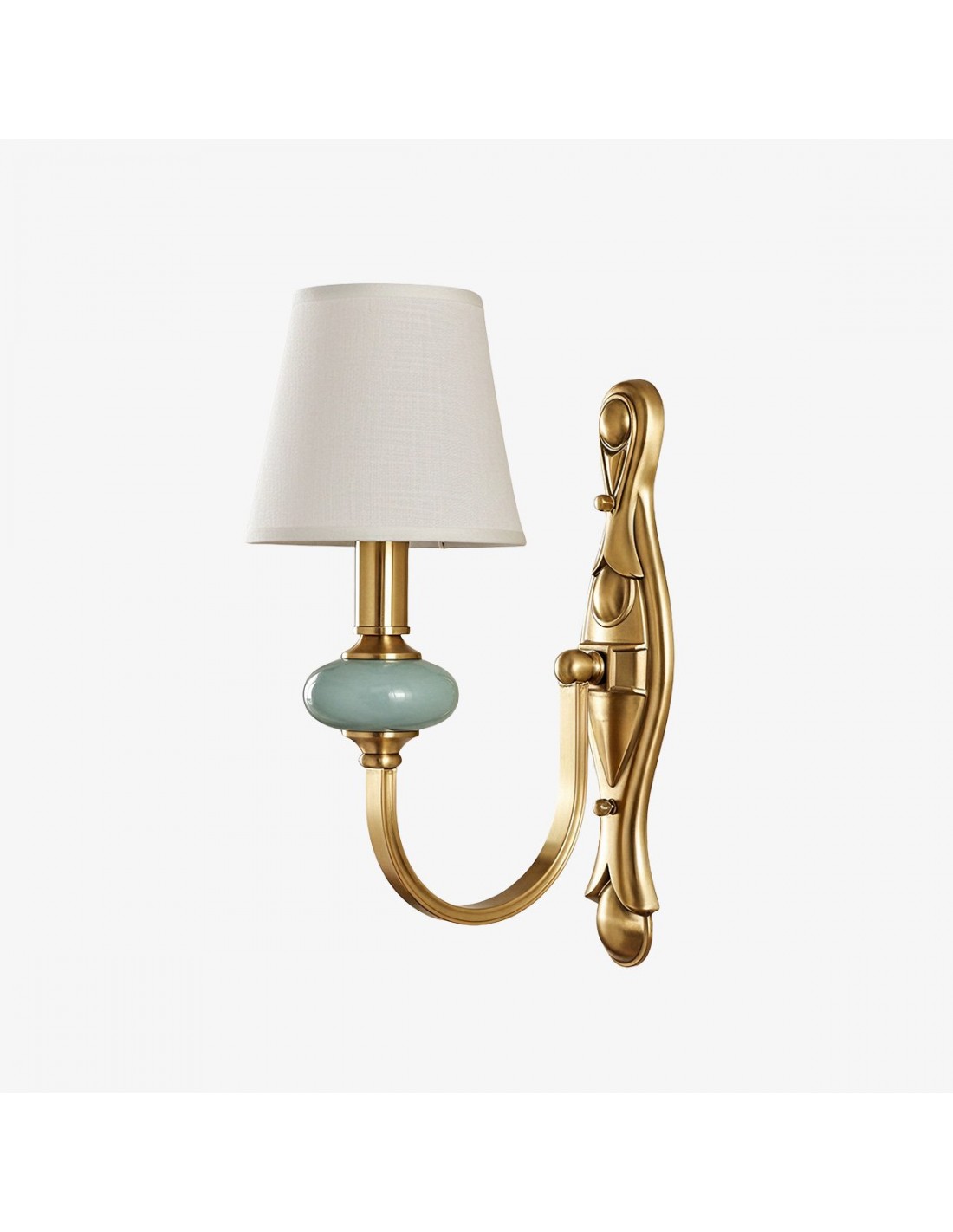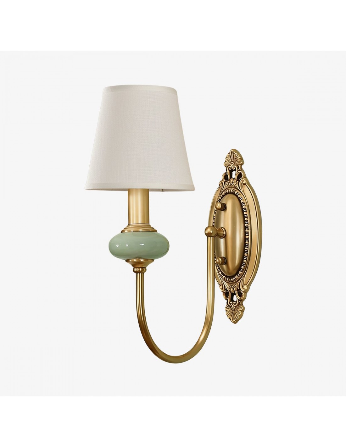 Cette applique murale allie avec brio le charme rustique d'une maison de campagne à une simplicité moderne et épurée, pour un style intemporel. Fabriquée en céramique, cuivre et tissu de haute qualité, elle apporte une chaleur durable et une élégance raffinée à toute pièce.