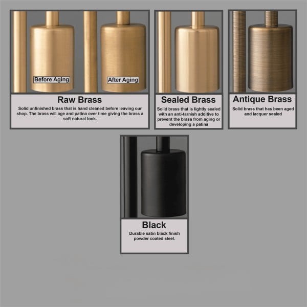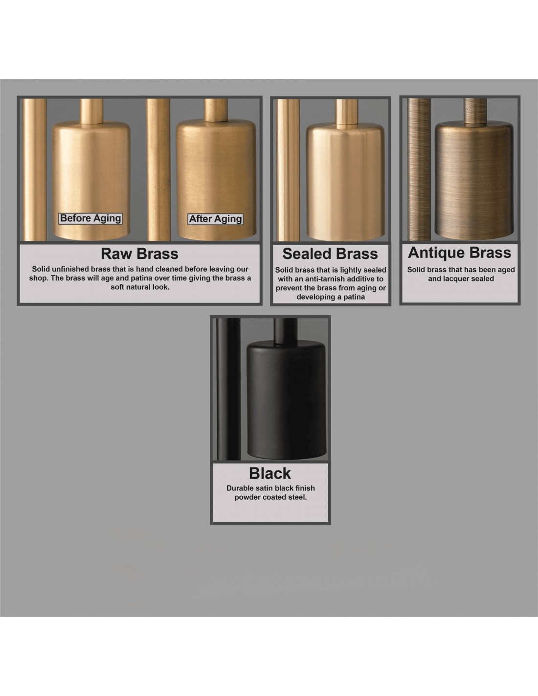 - Laiton scellé - Laiton massif légèrement scellé avec un additif anti-ternissement pour empêcher le laiton de vieillir ou de développer une patine.