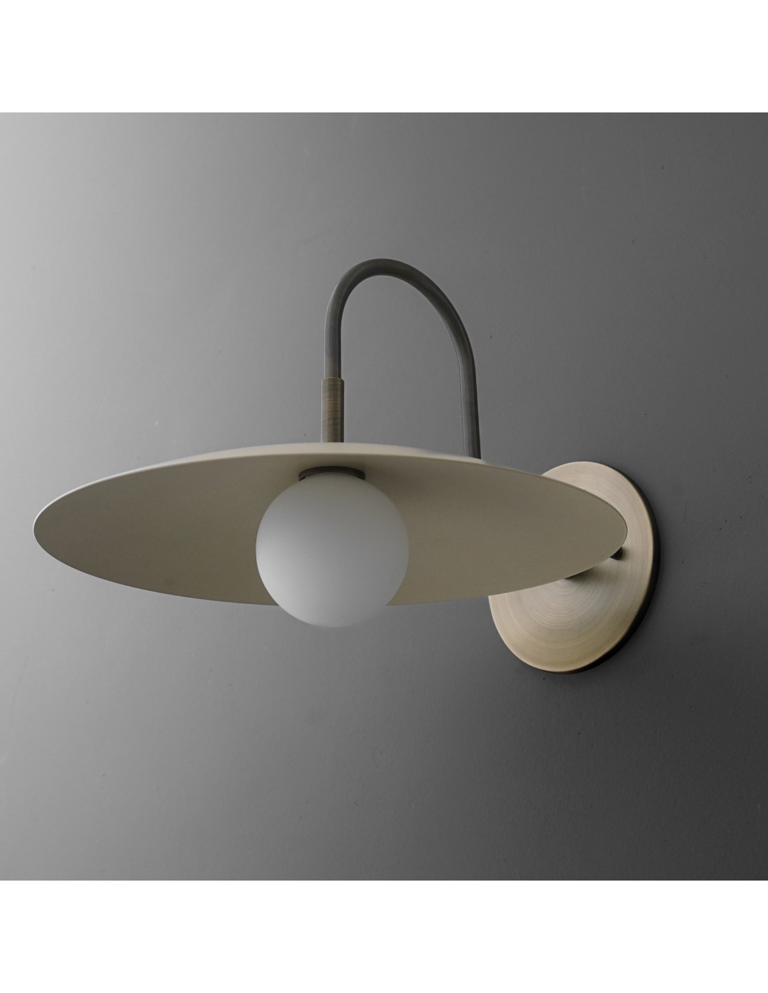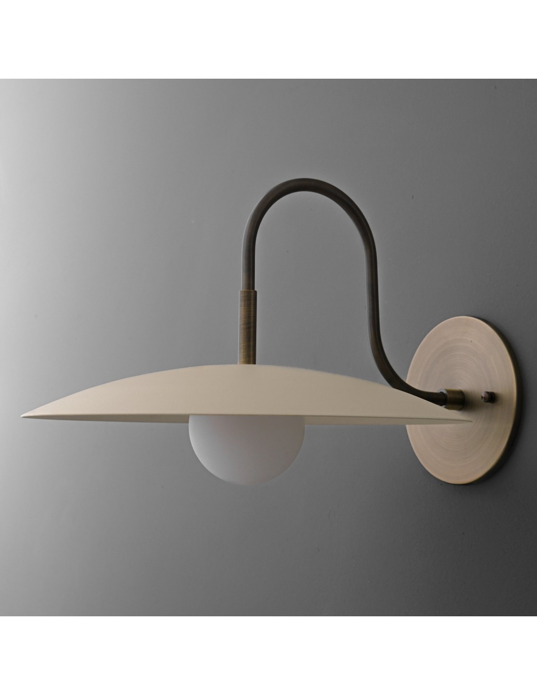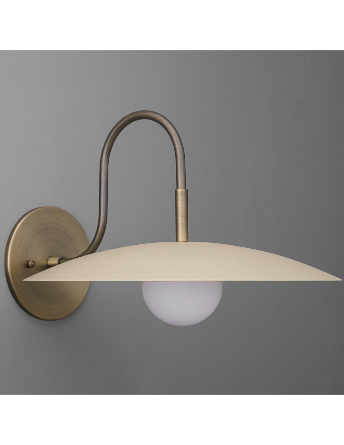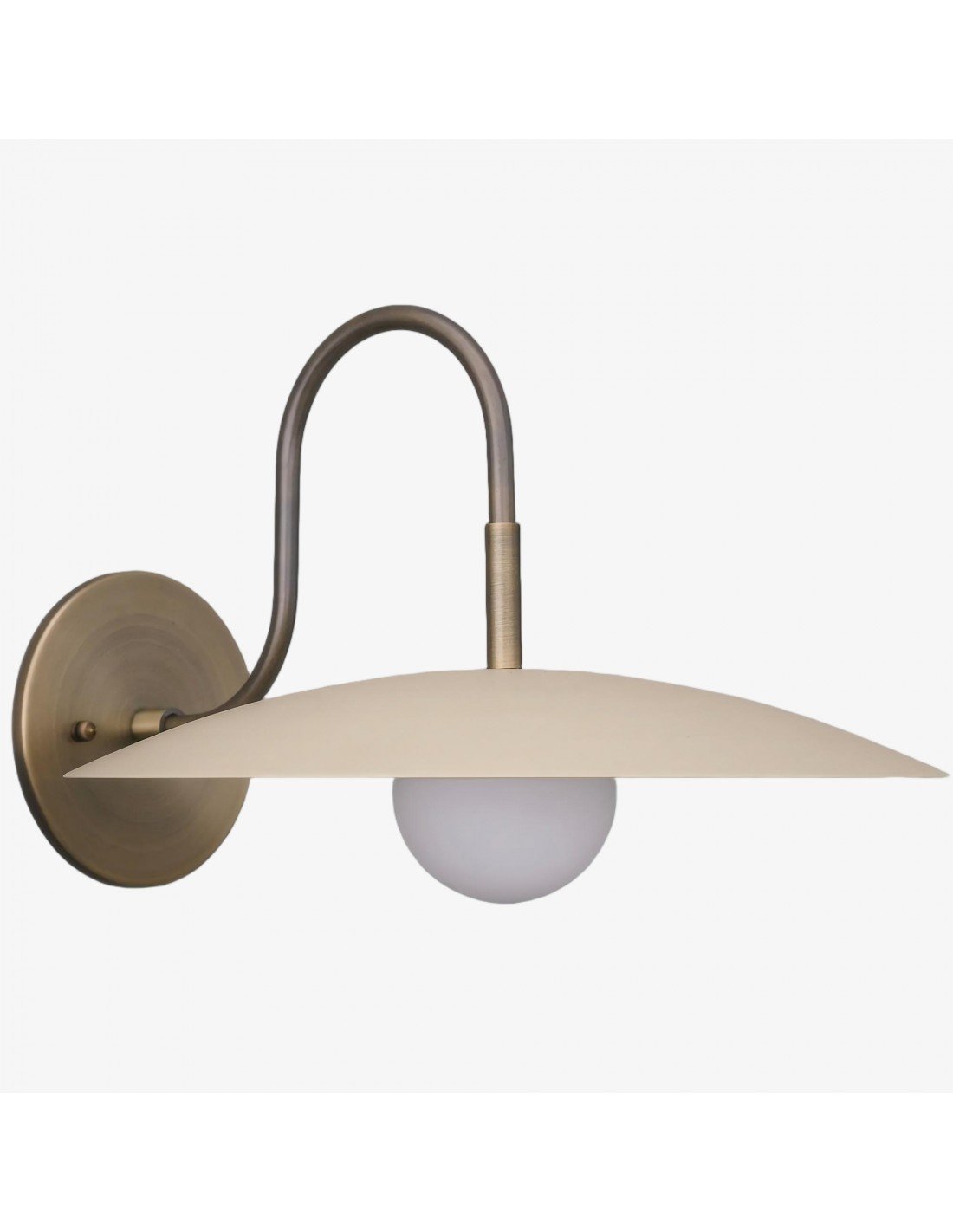 Applique murale moderne en métal Curva - Bras en laiton antique avec abat-jour disque crème KL1519