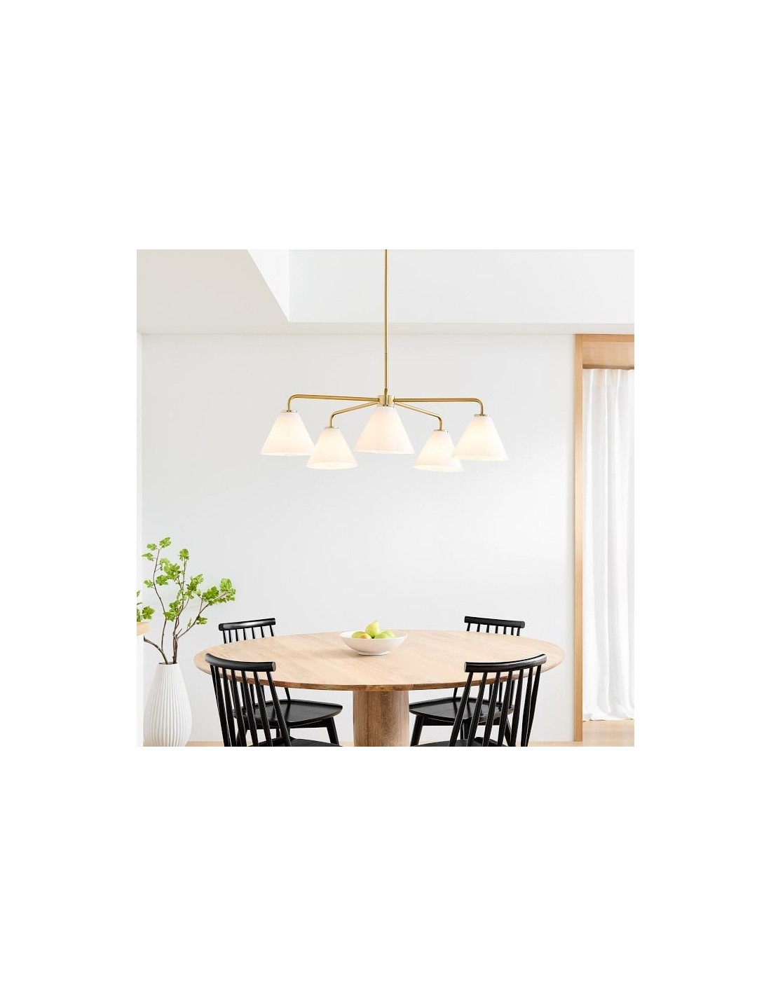 Le lustre sculptural conique à 5 lumières de notre collection Sculptural Glass crée un éclairage personnalisé à l'élégance moderne. Ses abat-jour coniques apportent une touche lumineuse aux salles à manger, salons ou entrées. Avec son design polyvalent et son style en verre saisissant, ce lustre sublime les intérieurs contemporains.