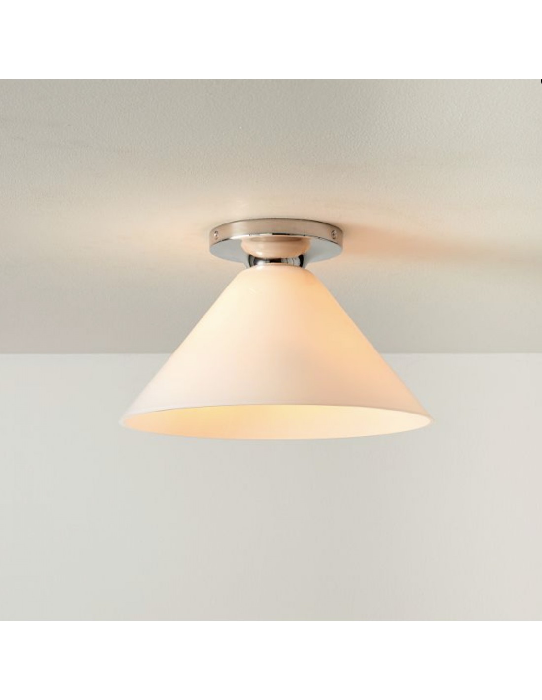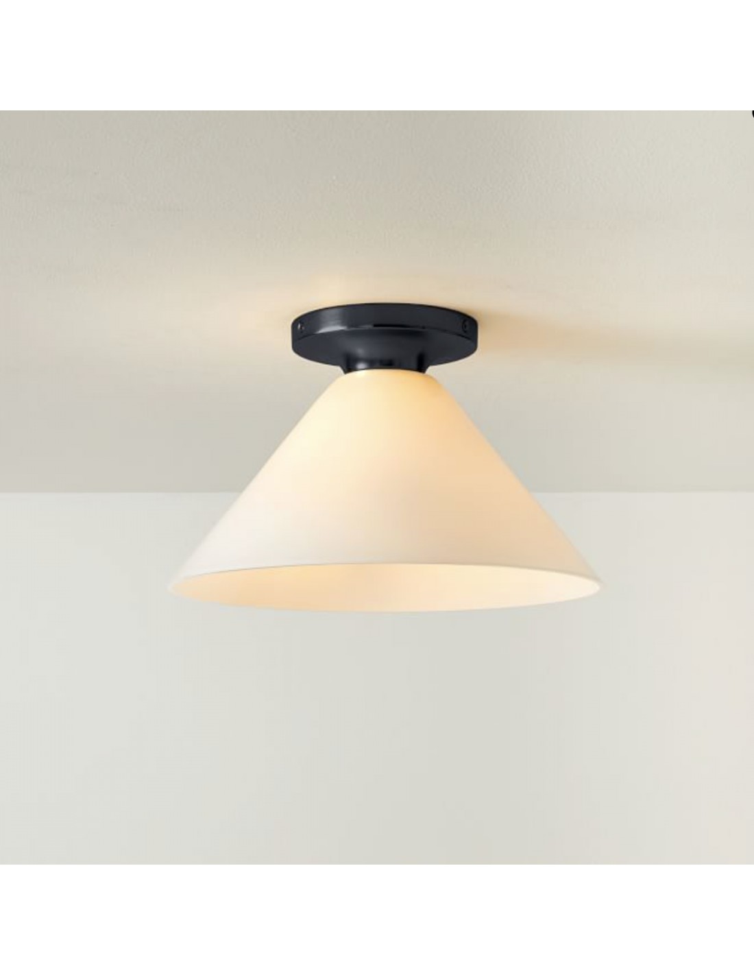 Le plafonnier Sculptural Cone offre une silhouette épurée et une touche personnalisée. Son abat-jour en verre conique crée un effet lumineux et chaleureux, idéal pour les salons, les couloirs ou les salles à manger. Il s'intègre harmonieusement aux intérieurs modernes comme classiques.