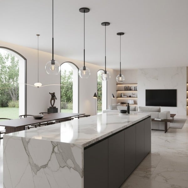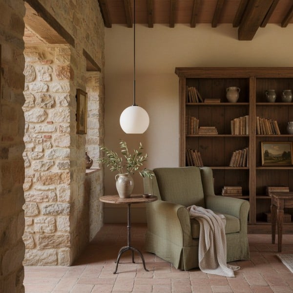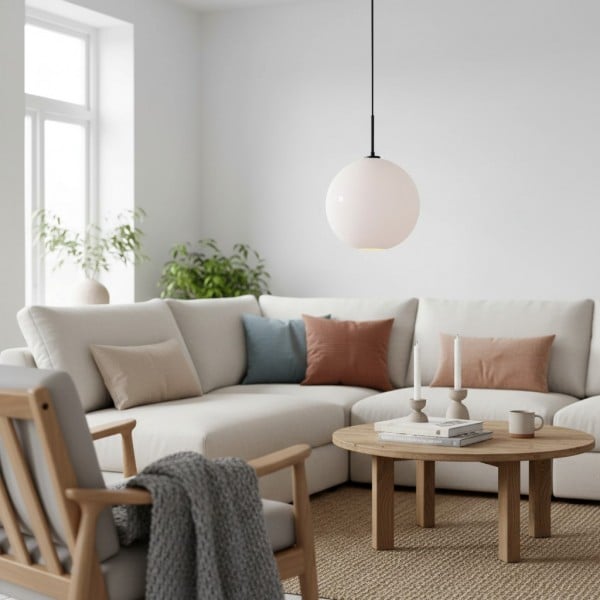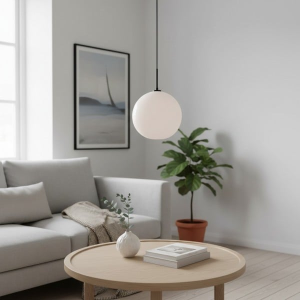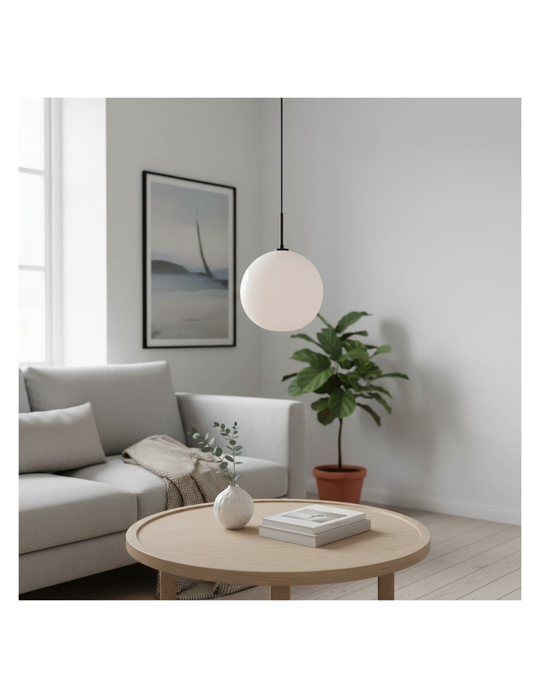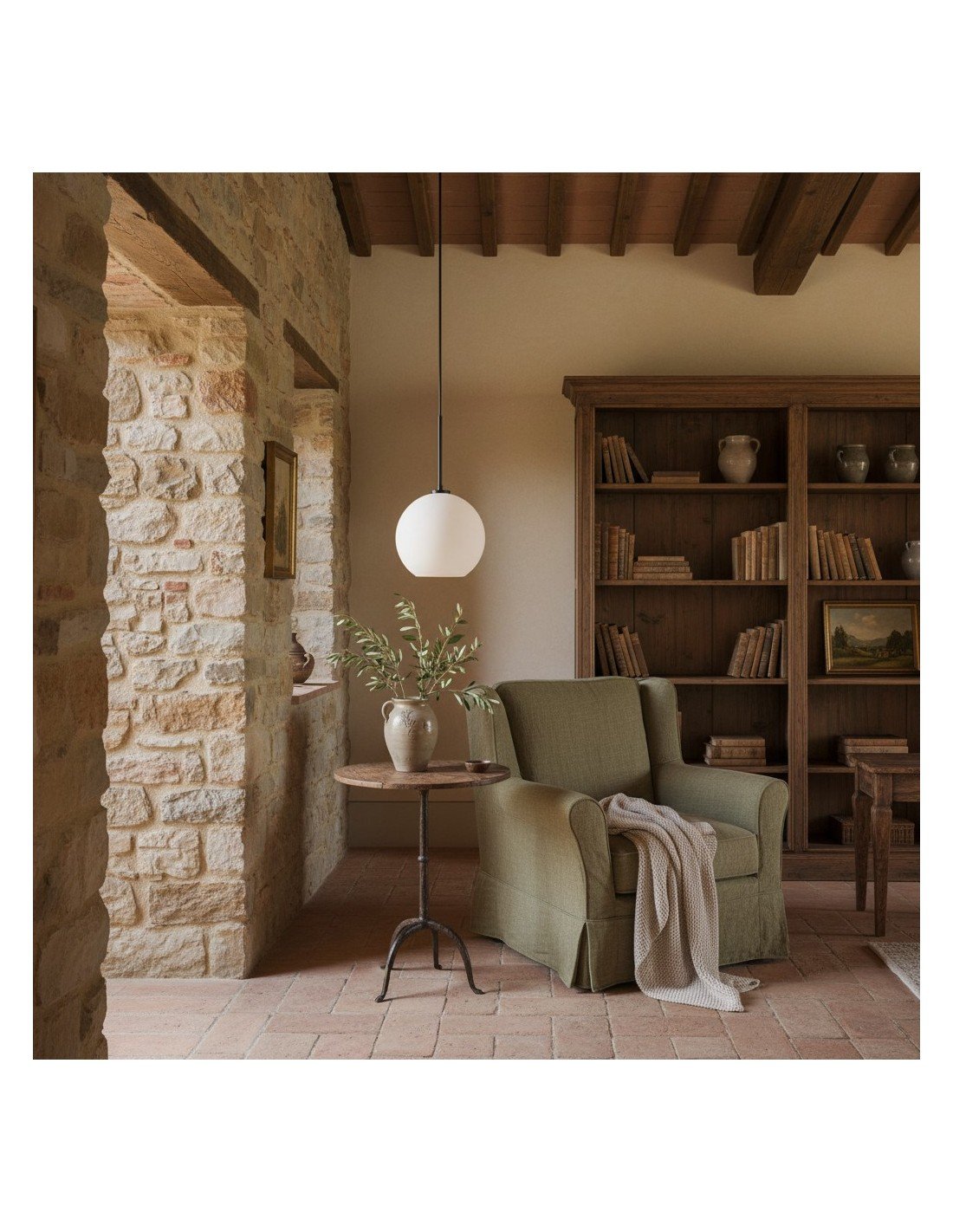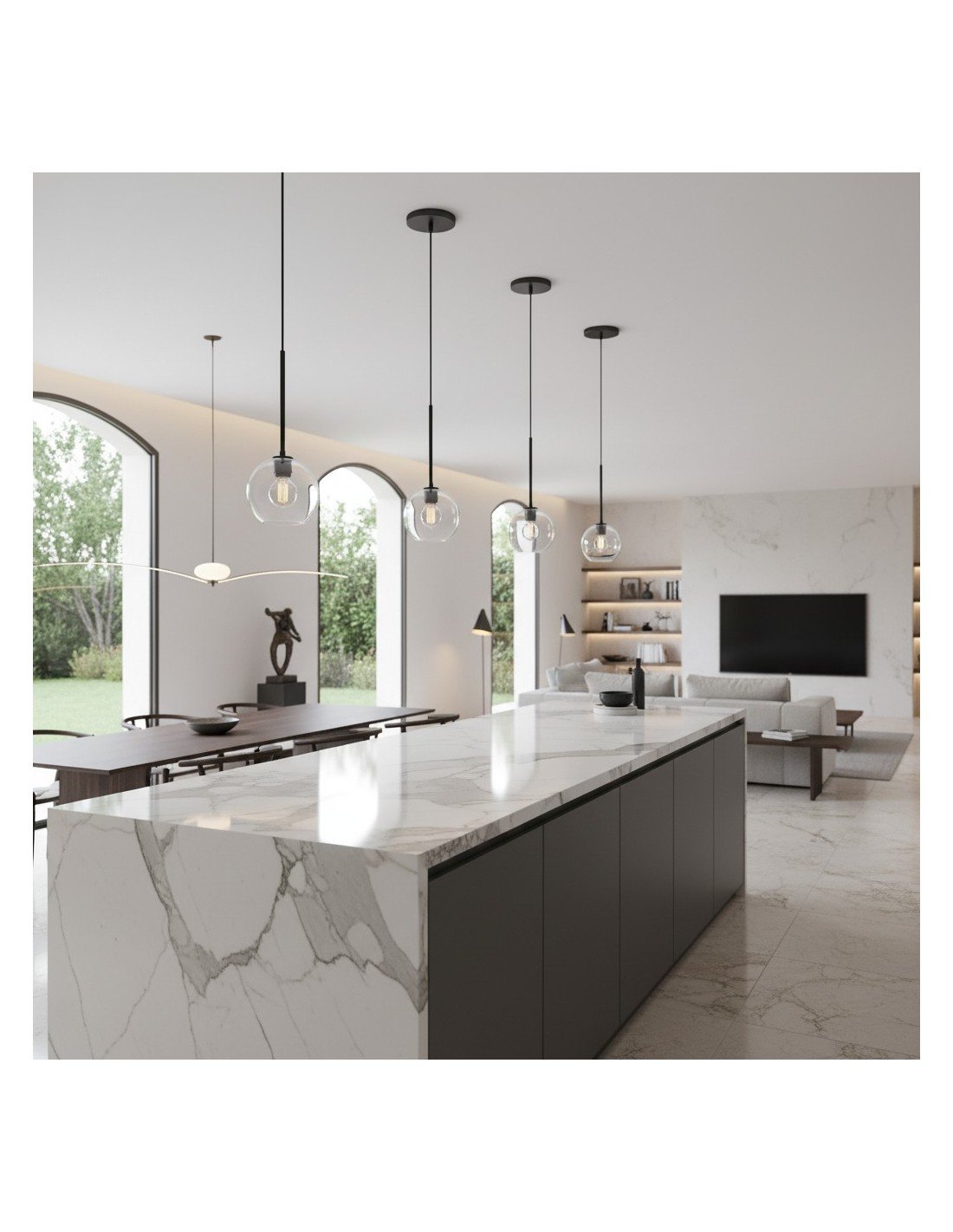 Cette suspension globe sculpturale allie élégance intemporelle et modernité. Son abat-jour en verre en forme de globe diffuse une lumière chaleureuse et accueillante, idéale pour tous les espaces. Son profil fin est idéal pour les appartements et les petites pièces, apportant une touche de polyvalence à votre entrée, cuisine ou salon.