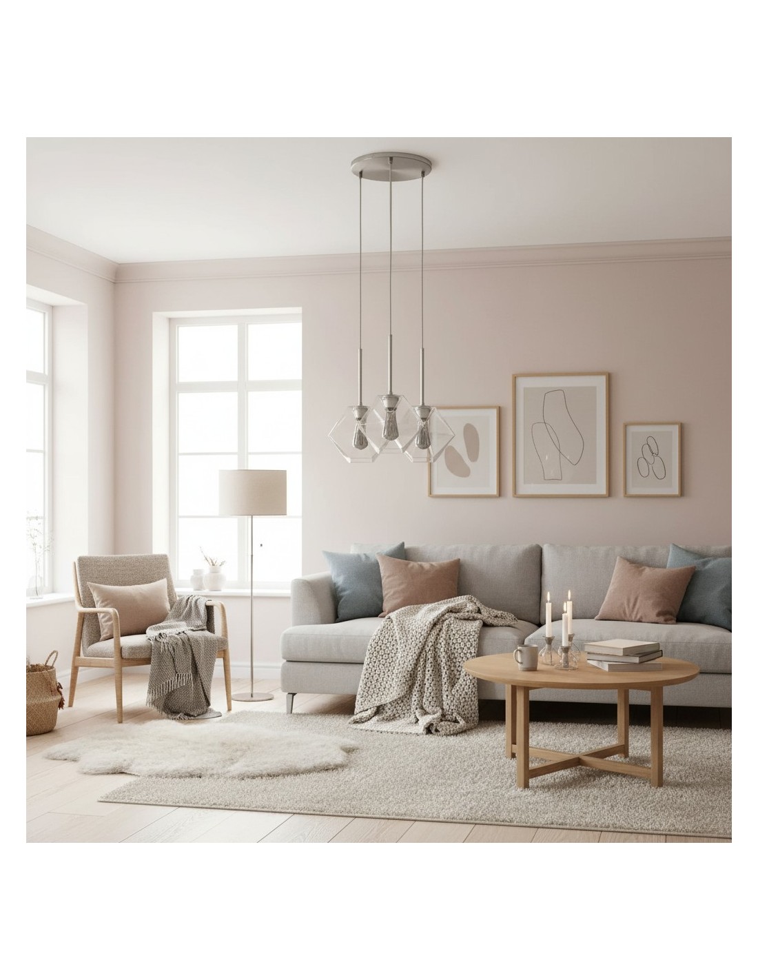Lustre sculptural à 3 lumières et facettes Talvior, finitions polyvalentes, KL1237
