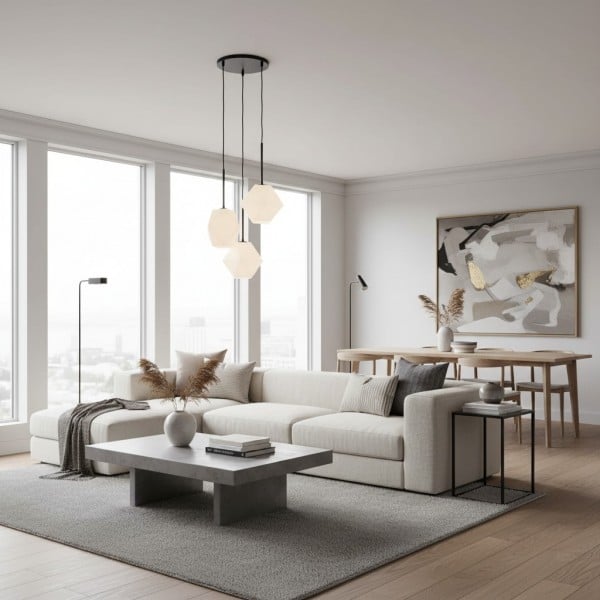Affirmez votre style avec ce lustre sculptural à 3 lumières, doté d'abat-jour à facettes qui respirent l'élégance moderne. Disponible en plusieurs finitions luxueuses, il offre une touche de personnalisation qui s'adapte à tous les décors. Fabriqué avec des matériaux de qualité professionnelle, ce luminaire est à la fois polyvalent et durable. Apportez une touche d'art contemporain à votre pièce avec cette pièce époustouflante.