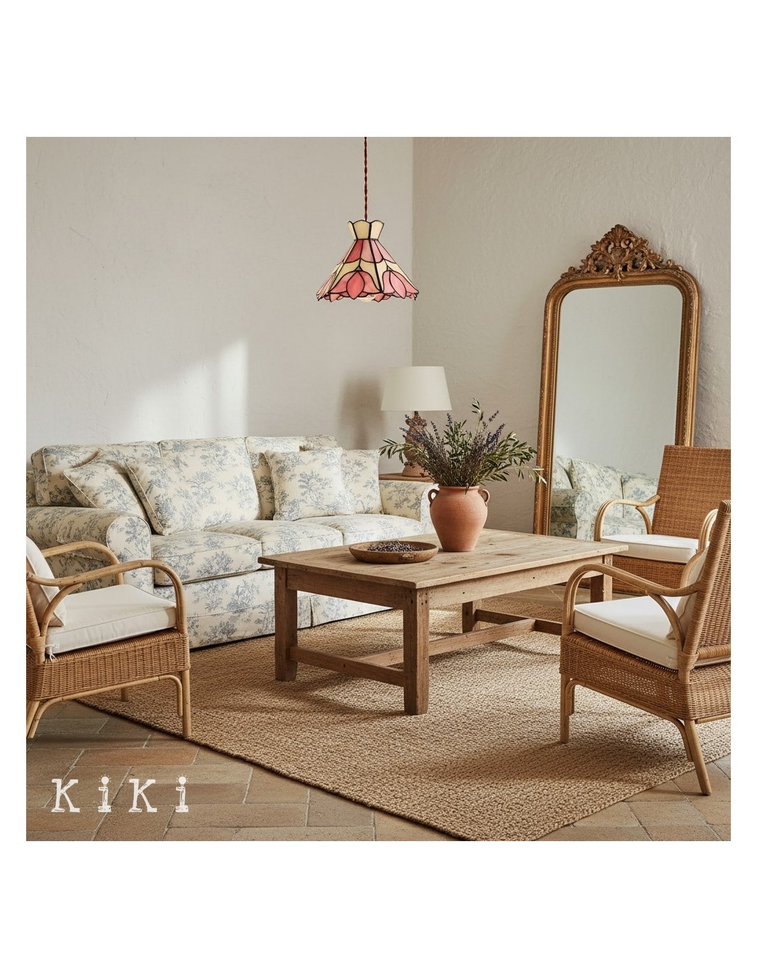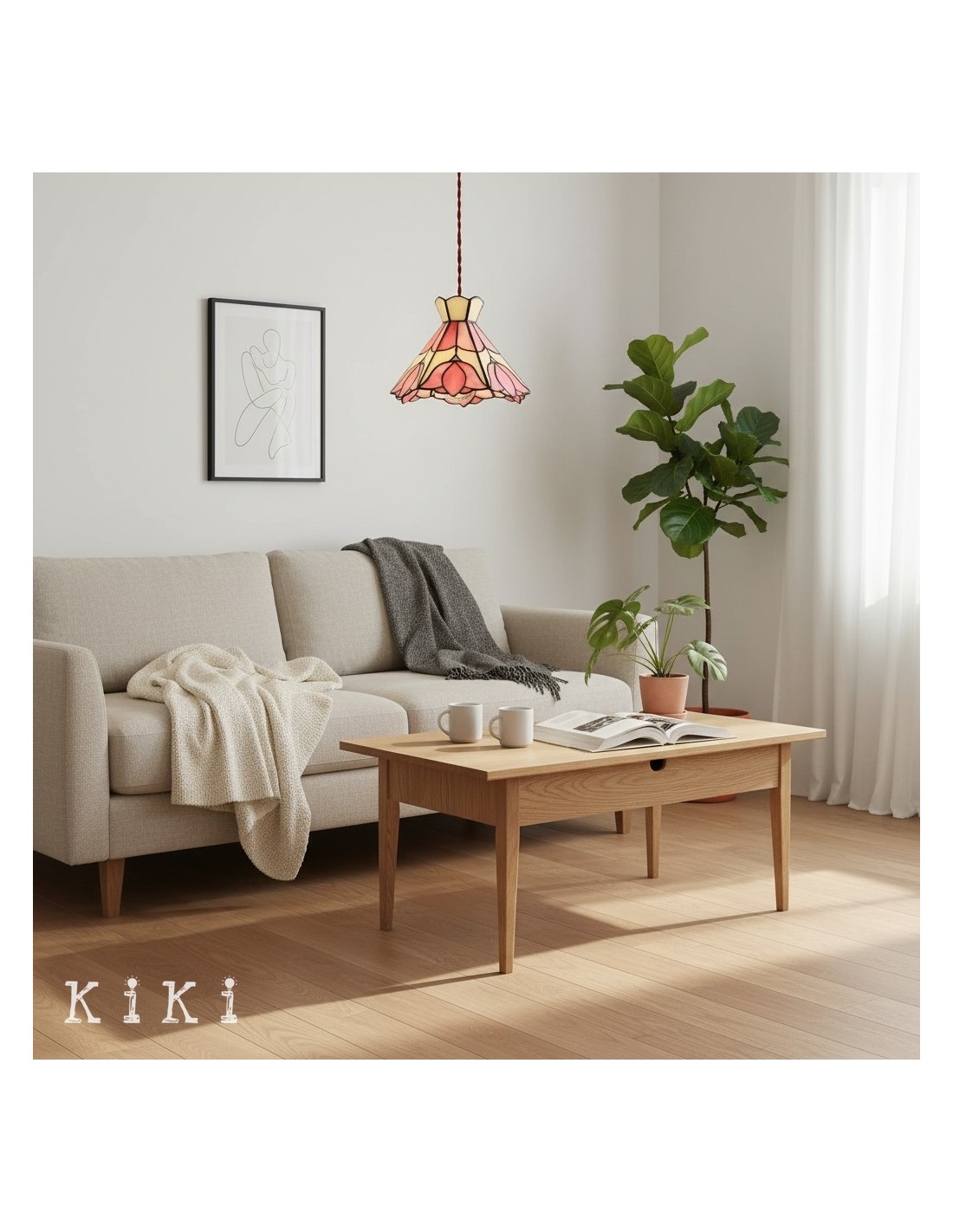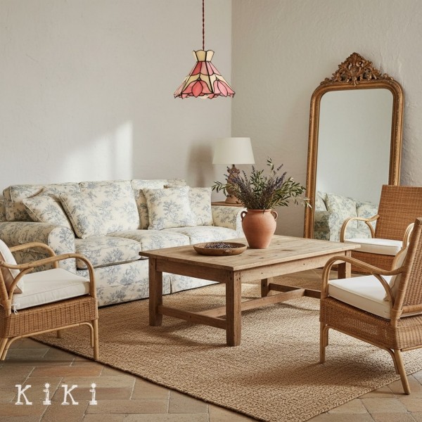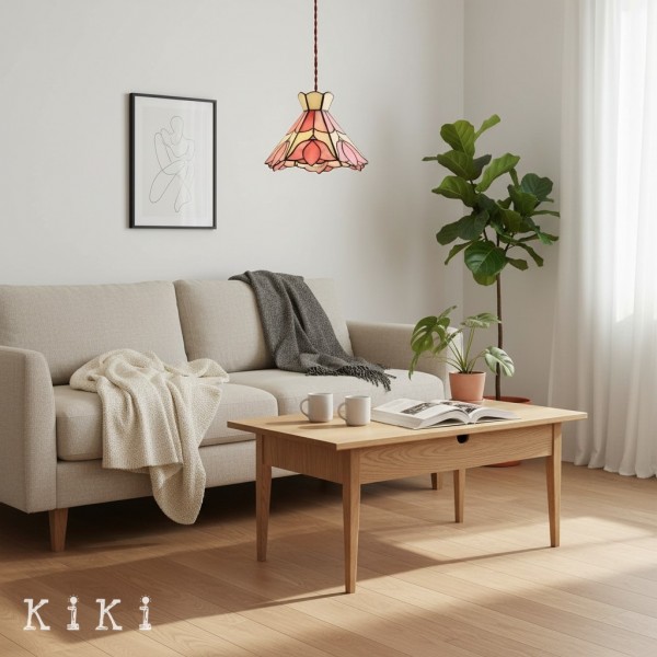 Apportez charme et élégance colorée à votre intérieur avec cette suspension florale en verre vitrail style Tiffany. Son abat-jour artistique présente des motifs floraux détaillés dans des tons doré, beige et rose, créant un point focal visuel captivant et raffinant l’ambiance de toute pièce.