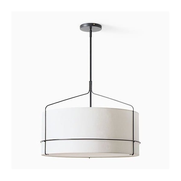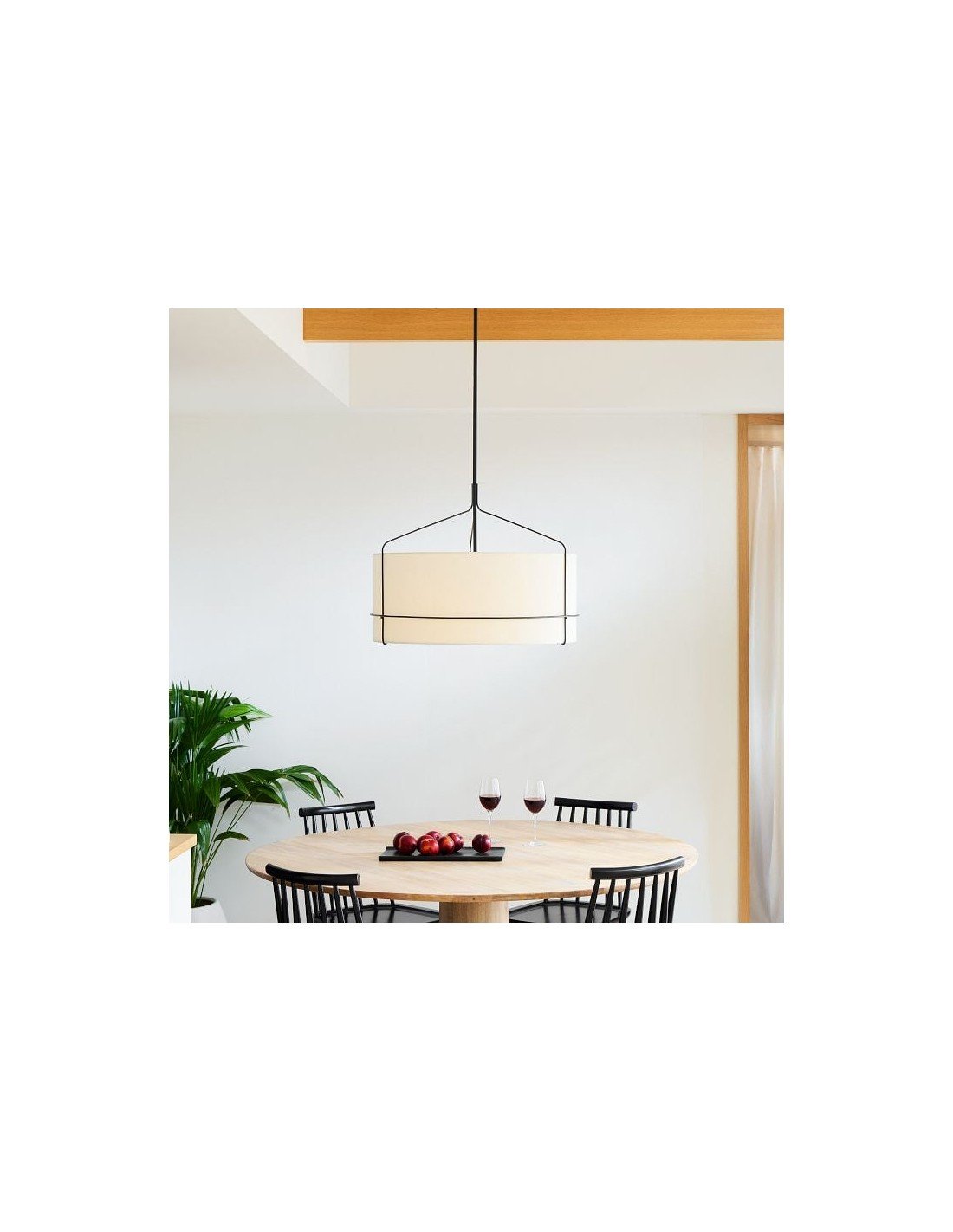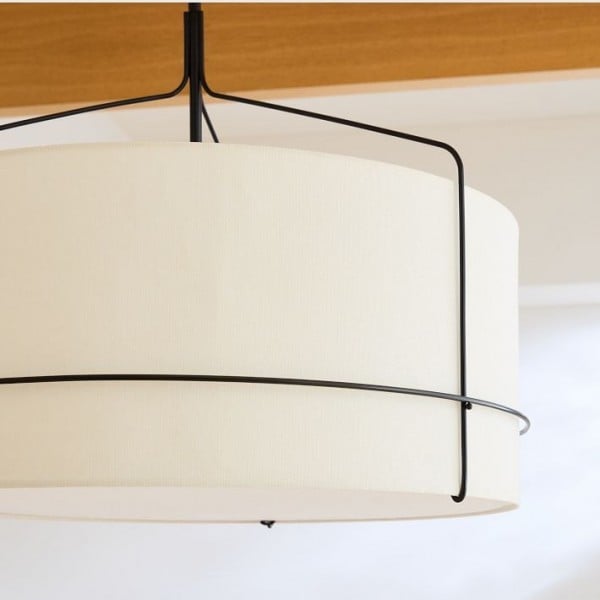 Cette suspension apporte une lumière chaleureuse et confortable aux entrées, cuisines ou chambres. Sa structure métallique apparente lui confère un charme industriel, sublimé par une finition bronze foncé sur le corps et le baldaquin, ainsi que par un abat-jour en lin blanc.