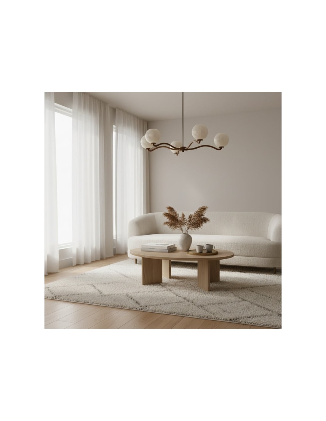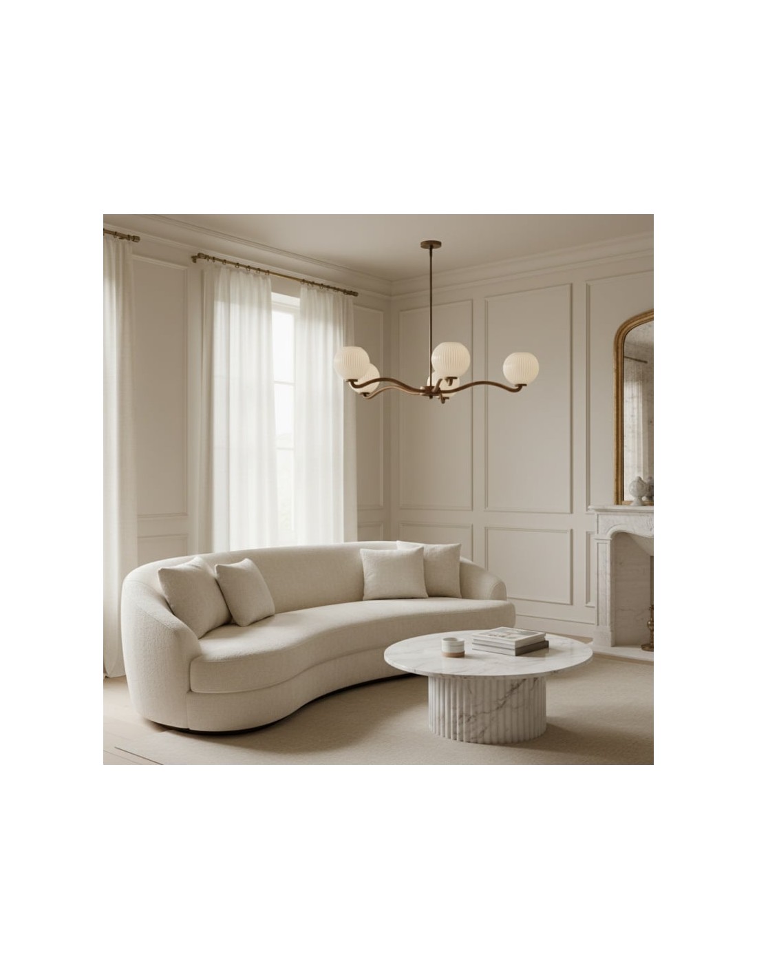 Ce lustre Shella, réalisé en matériaux mixtes, incarne le glamour moderne avec un charme intemporel, diffusant une lumière chaude et douce qui sublime les espaces de vie, les salles à manger ou les chambres. Sa silhouette organique et sa finition haut de gamme apportent élégance et raffinement à tout intérieur.