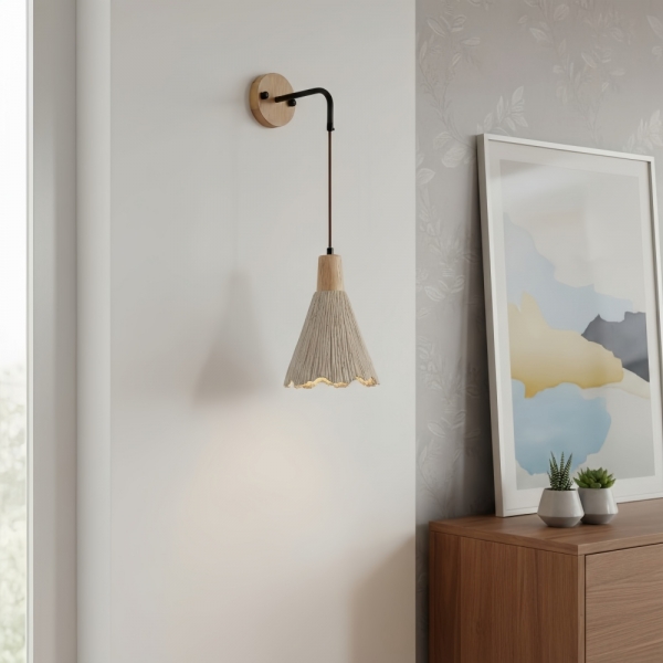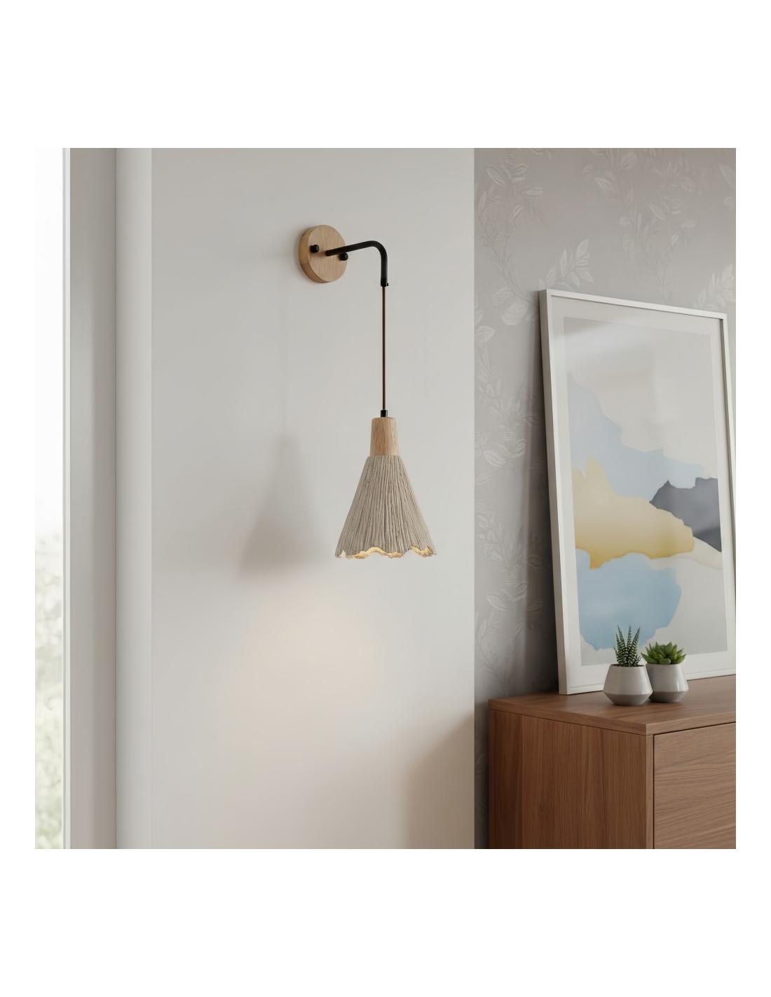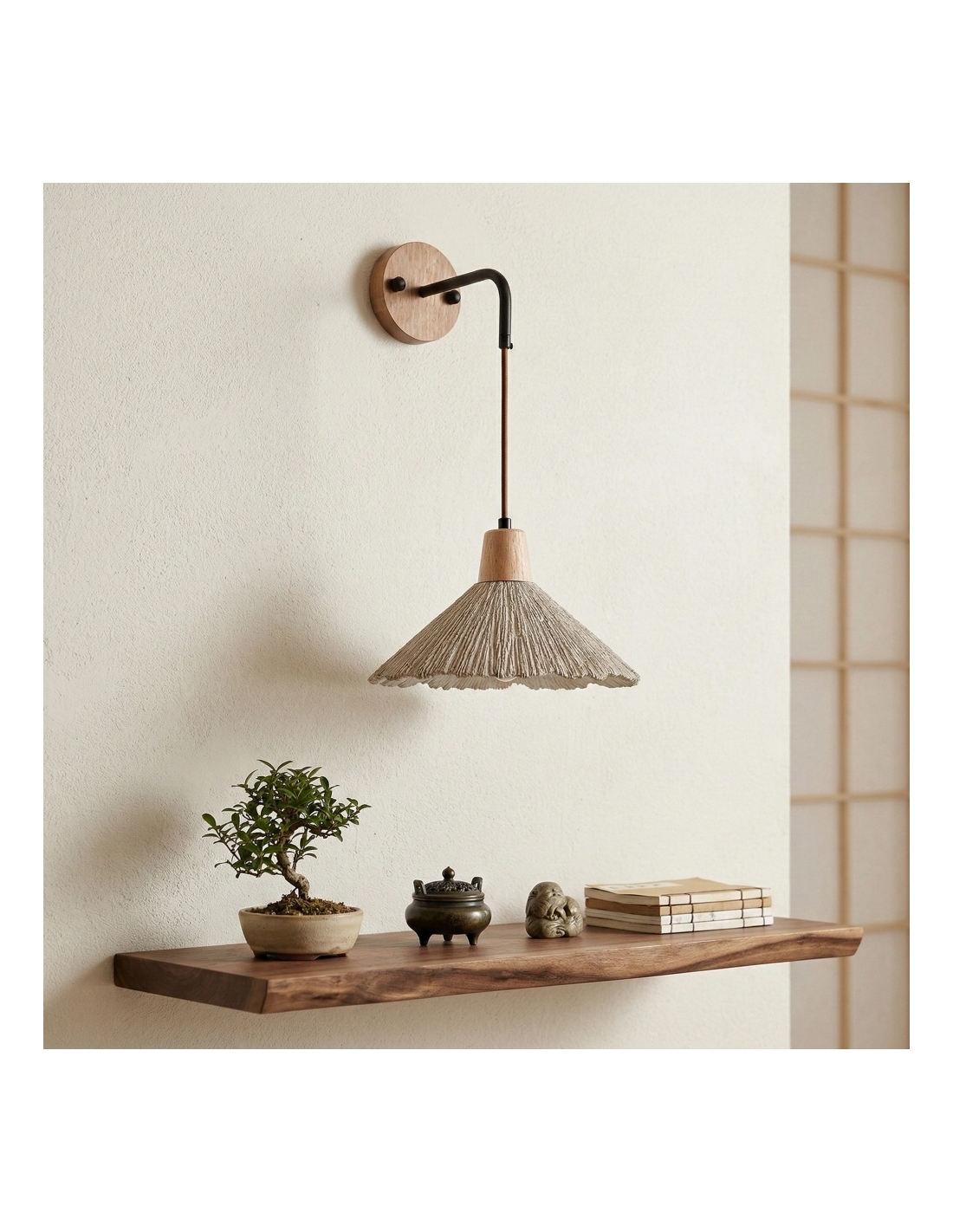Cette applique murale minimaliste de style industriel est dotée d'un abat-jour conique en microciment sur une base en bois avec un bras en métal, diffusant une lumière douce vers le bas. Idéale pour les salons, les chambres, les couloirs et les coins cosy dans les intérieurs modernes ou wabi-sabi.
