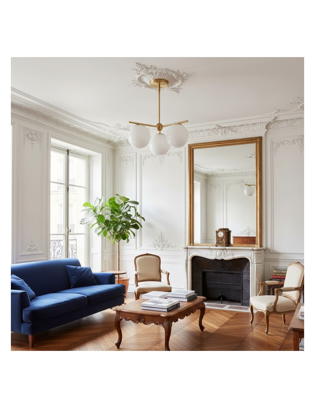 - Trois globes en verre en finition Milk.