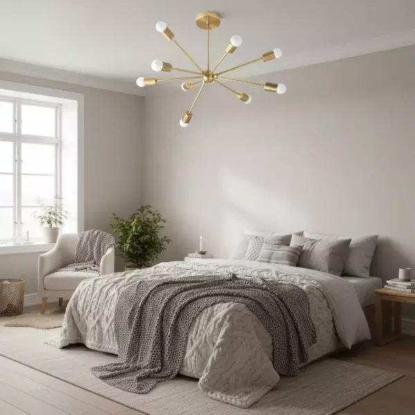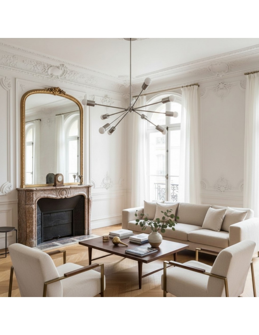 Ravivez le style emblématique du milieu du siècle avec notre superbe lustre Sputnik. Fabriqué en laiton massif avec une finition douce et lustrée, ce plafonnier moderne apporte une touche de sophistication vintage à tout espace. Ses bras rayonnants créent une silhouette géométrique captivante, idéale pour les salons, les salles à manger ou les entrées. Ce luminaire discret diffuse une lumière chaleureuse qui s'harmonise avec une élégance intemporelle aux intérieurs contemporains. Sublimez votre décoration intérieure avec cette pièce d'exception.