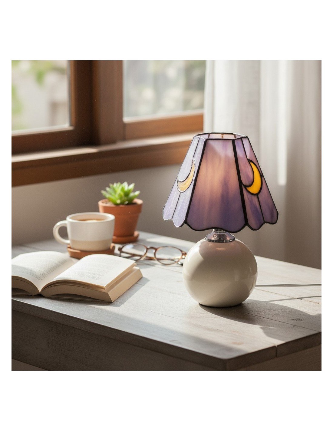 Lampe de table sculpturale en vitrail, à la silhouette fantaisiste inspirée d'un champignon et à l'abat-jour artistique diffusant une douce lumière tamisée. Alliant élégance décorative et éclairage d'appoint fonctionnel, elle est idéale pour les tables de chevet, les salons, les couloirs, les coins bureau et les vitrines.