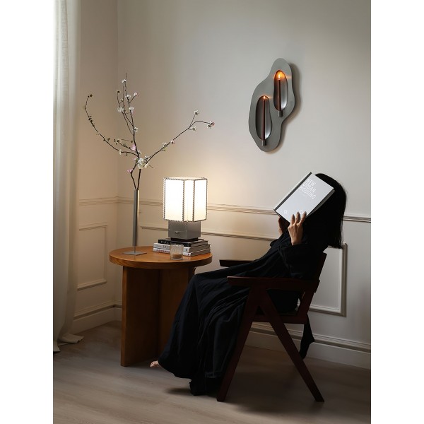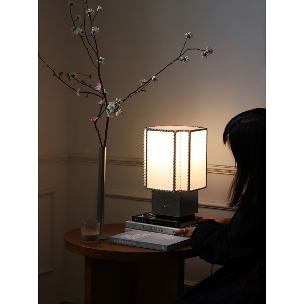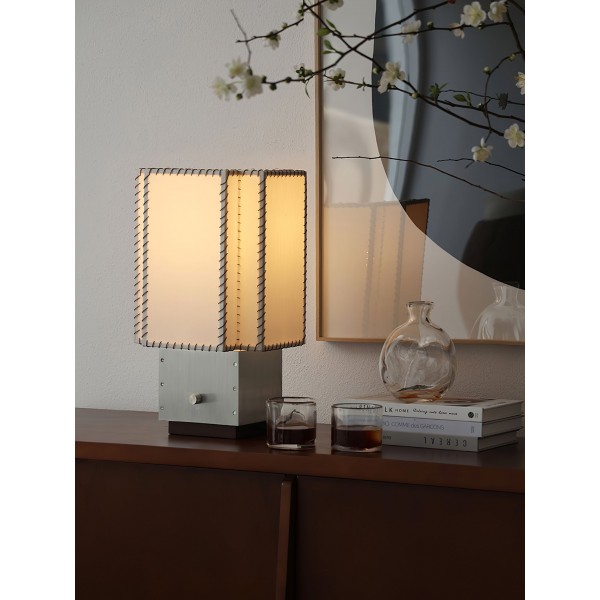 Fusion parfaite du charme artisanal et de la précision industrielle, la lampe de table Tanu Stitch arbore un abat-jour rectangulaire doux, enveloppé d'un tissu texturé, rehaussé de coutures rouges distinctives cousues main. Reposant sur un pied en métal brossé aux touches chaleureuses de bois, elle apporte à votre espace un mélange unique d'artisanat et de minimalisme contemporain.