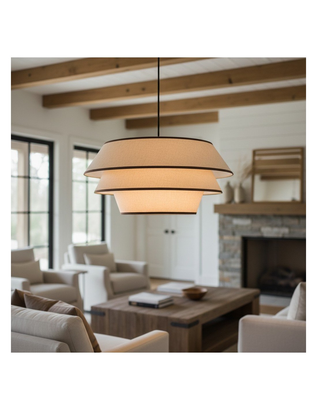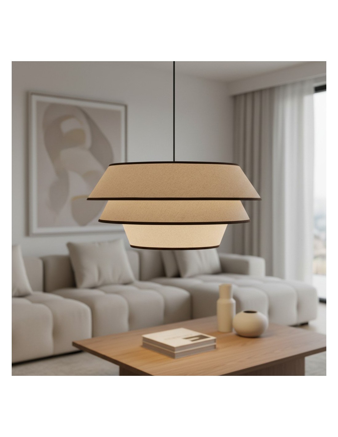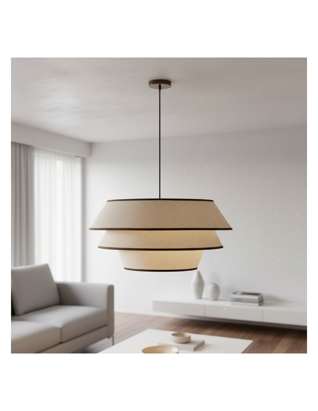 La suspension Tarivon associe une structure en acier épurée à un abat-jour en tissu doux pour un style moderne et élégant. Idéale pour les cuisines, les salles à manger, les salons ou les couloirs, elle diffuse une lumière douce et chaleureuse et apporte une touche contemporaine à votre intérieur.
