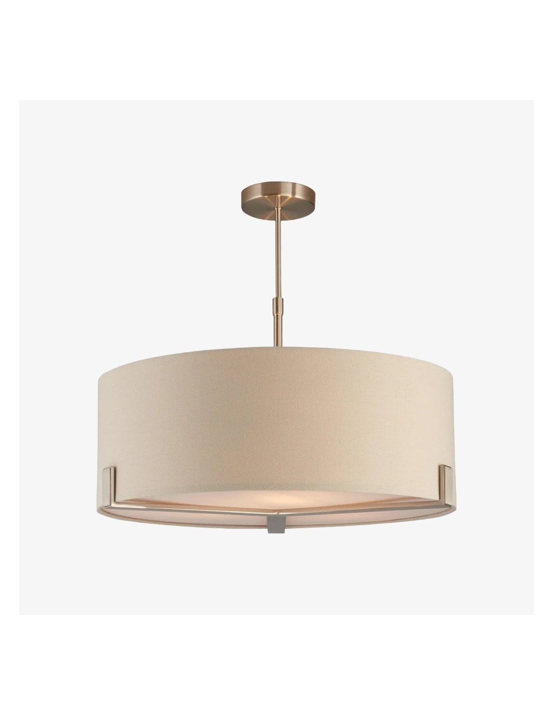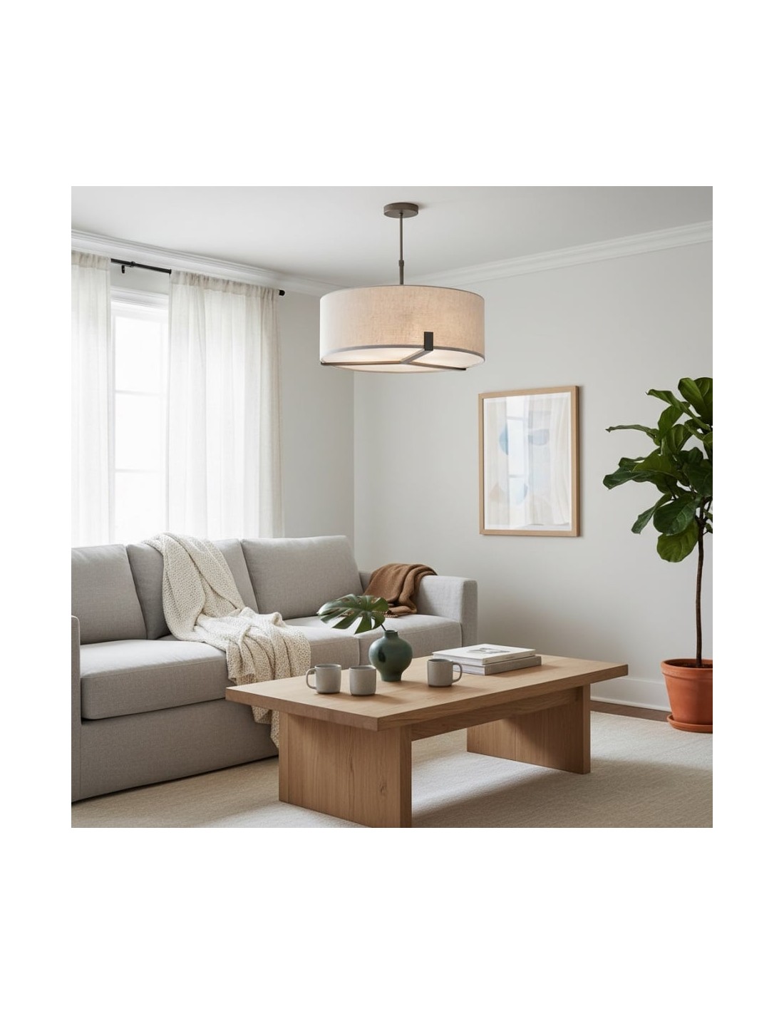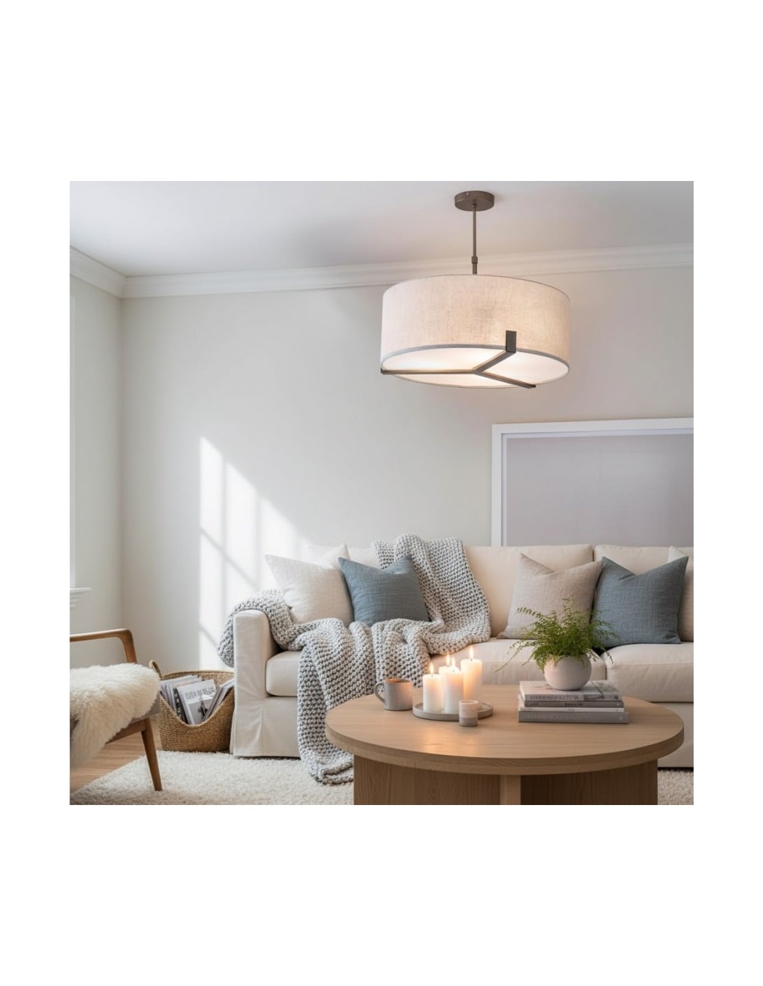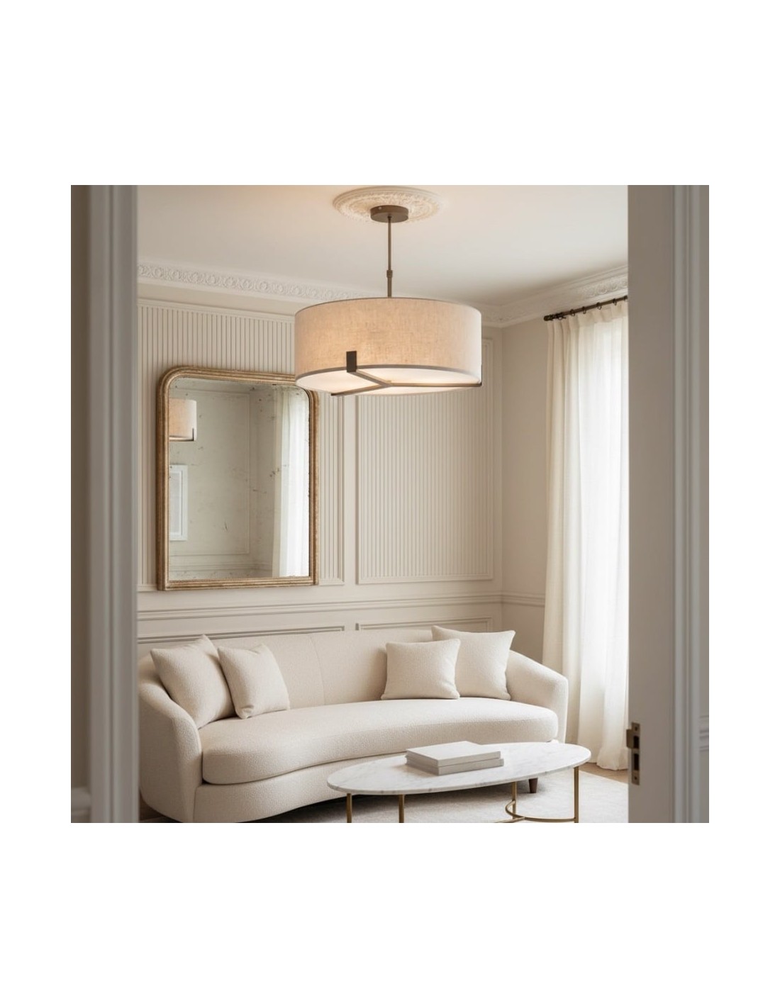 La suspension Tela à 3 lumières est un luminaire raffiné qui allie une structure métallique sobre à un abat-jour en tissu doux, offrant un style à la fois moderne et intemporel. Grâce à sa fonction de variation d'intensité et à son diffuseur en tissu qui réduit l'éblouissement, elle est idéale pour les salons, les salles à manger, les chambres ou les couloirs.