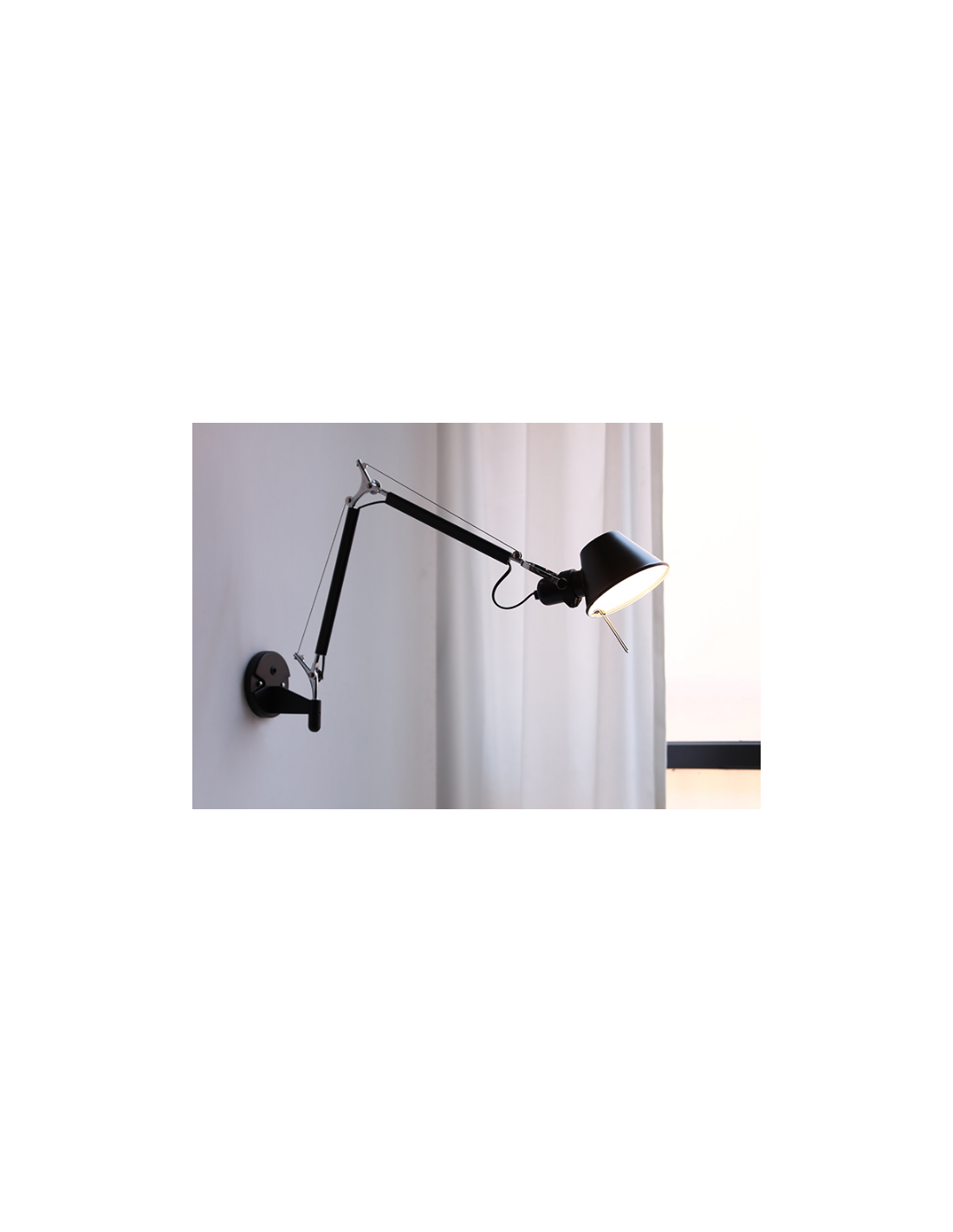 L'applique murale rotative télescopique comprend un bras de lampe contrôlable qui peut s'étirer et se rétrécir et un abat-jour qui peut pivoter de manière flexible. Principalement en aluminium. Disponible en deux tailles en finition noire.