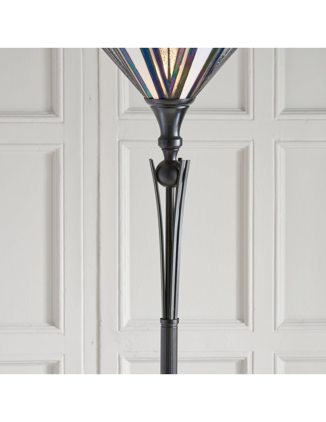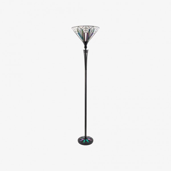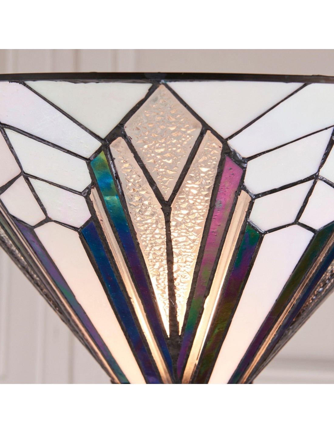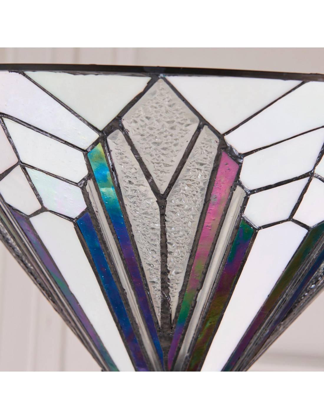 Cette lampe, d'inspiration Art déco, est un luminaire raffiné composé d'un mélange texturé de panneaux de verre d'art transparent, blanc et irisé. Son abat-jour en verre biseauté et alvéolé diffuse une lumière magnifique, qu'on l'observe de près ou de loin.