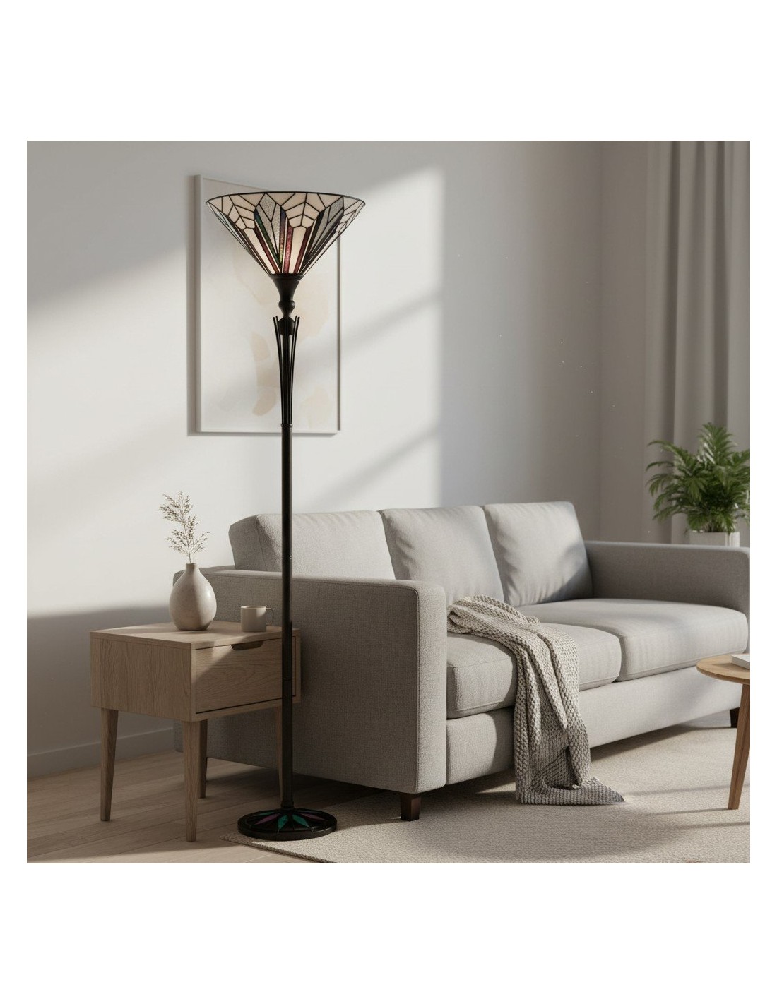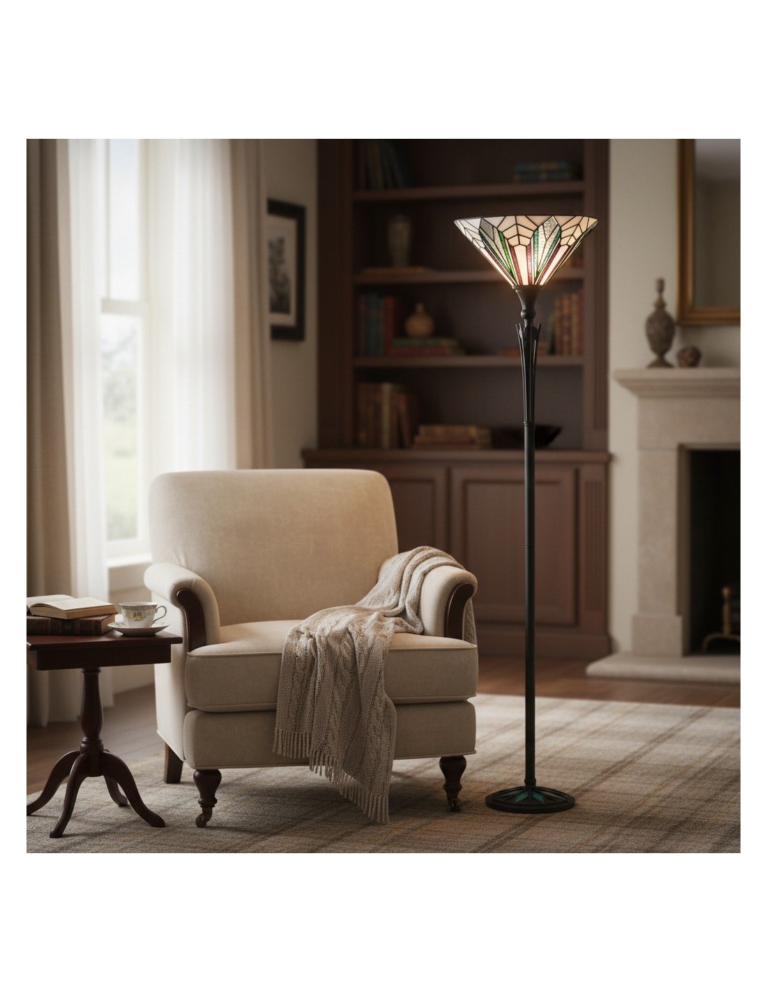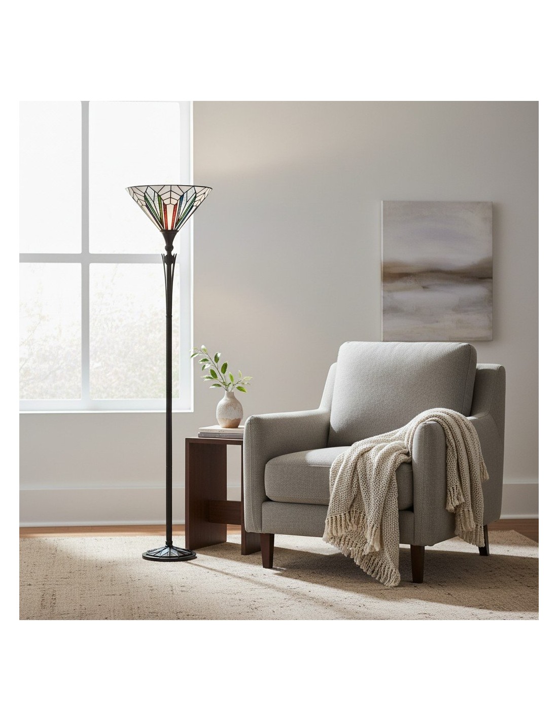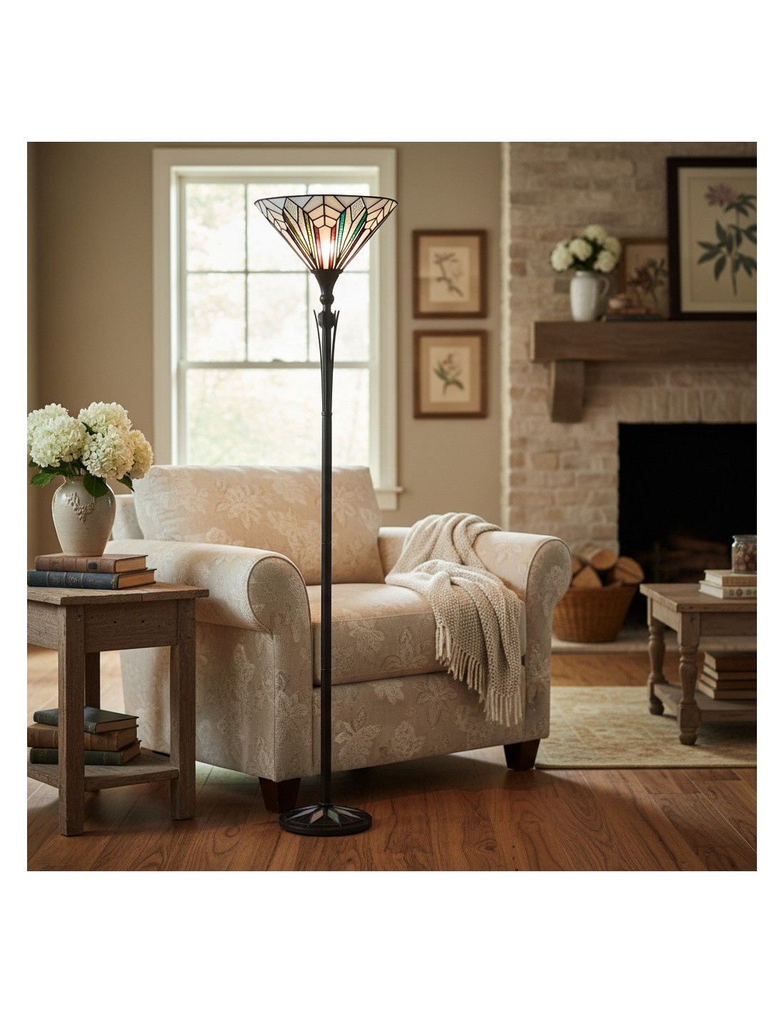 Cette lampe, d'inspiration Art déco, est un luminaire raffiné composé d'un mélange texturé de panneaux de verre d'art transparent, blanc et irisé. Son abat-jour en verre biseauté et alvéolé diffuse une lumière magnifique, qu'on l'observe de près ou de loin.