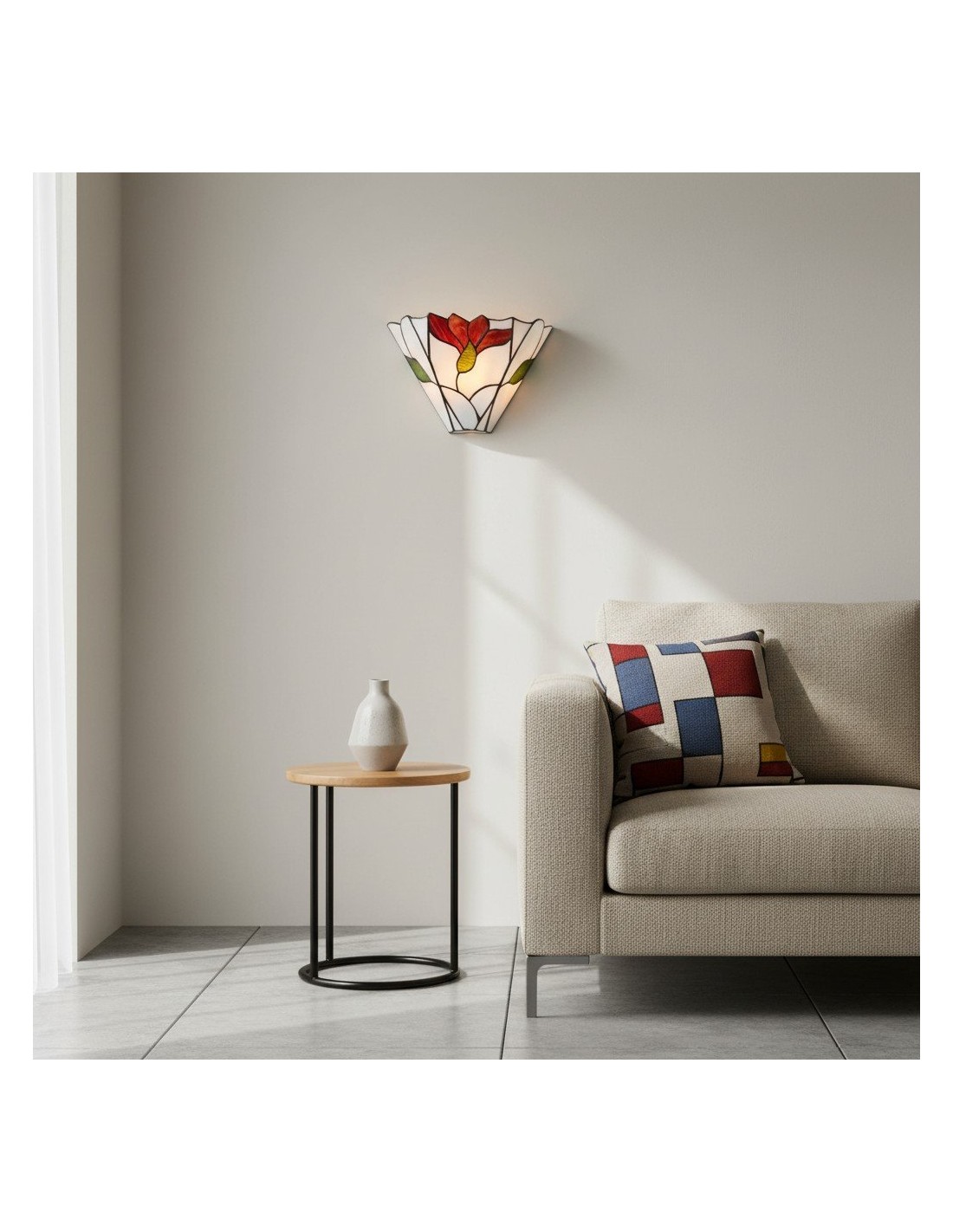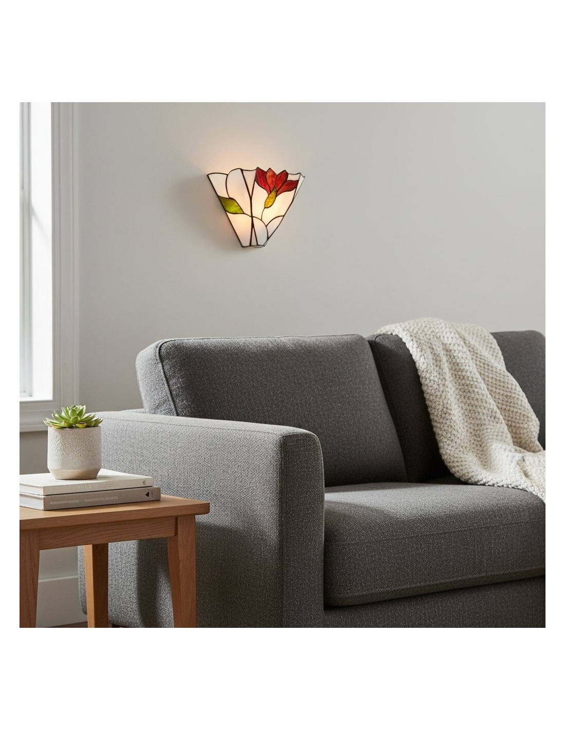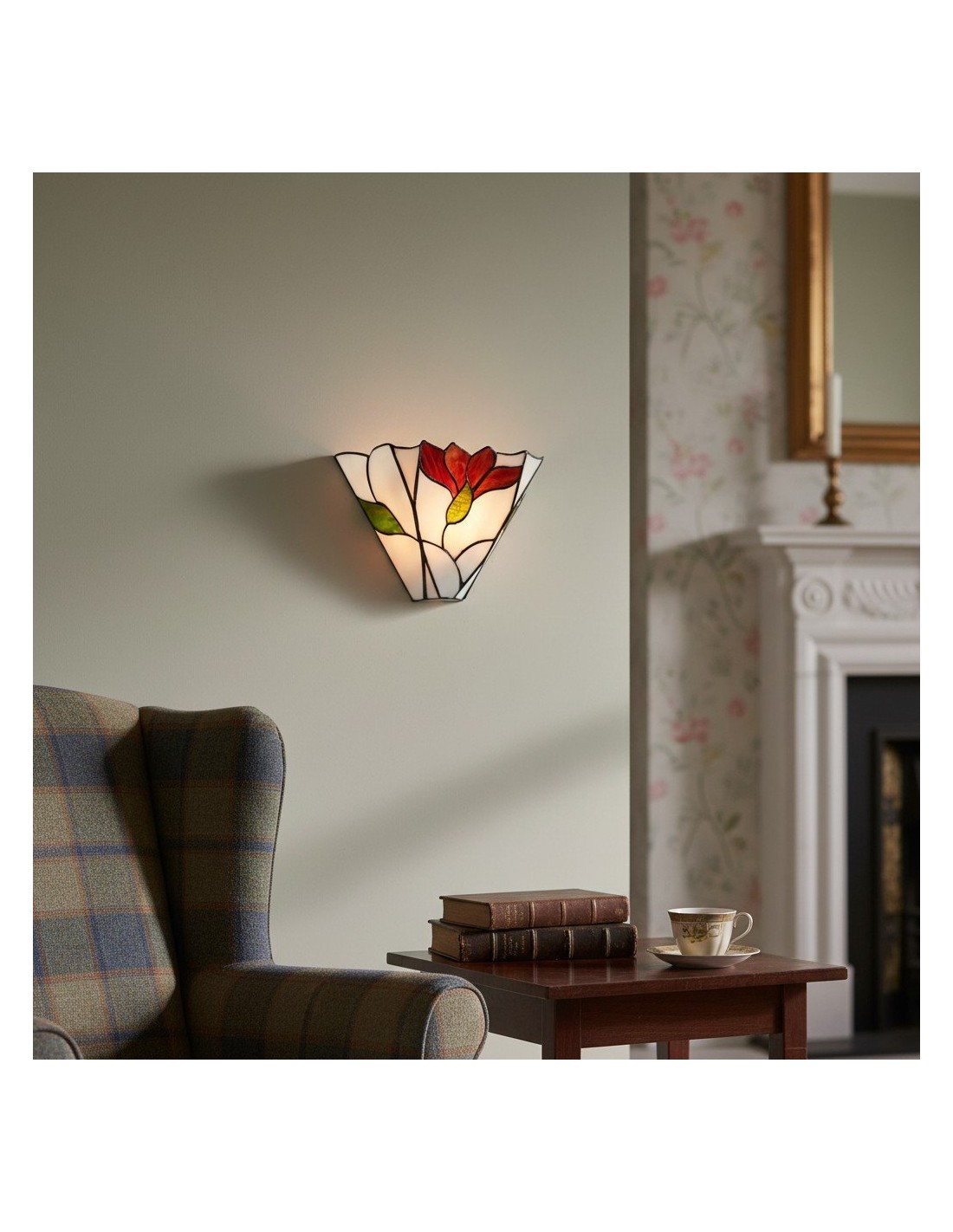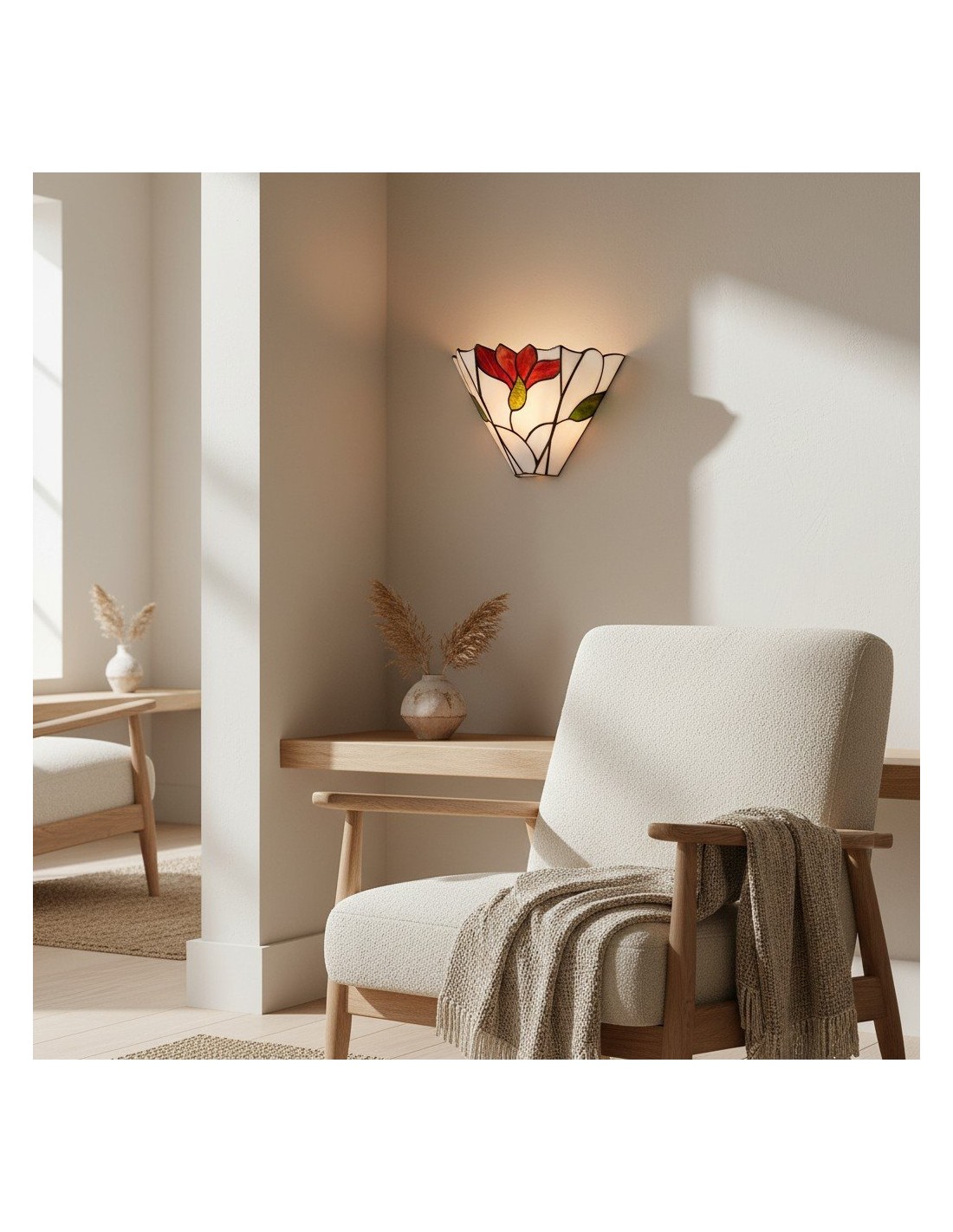Apportez une touche artistique à votre intérieur avec l'applique murale TF Botanica. Ornée de vitraux artisanaux aux motifs floraux raffinés, cette applique diffuse une lumière douce et chaleureuse. Son design intemporel s'harmonise avec les salons et les salles à manger, alliant élégance vintage et fonctionnalité moderne.