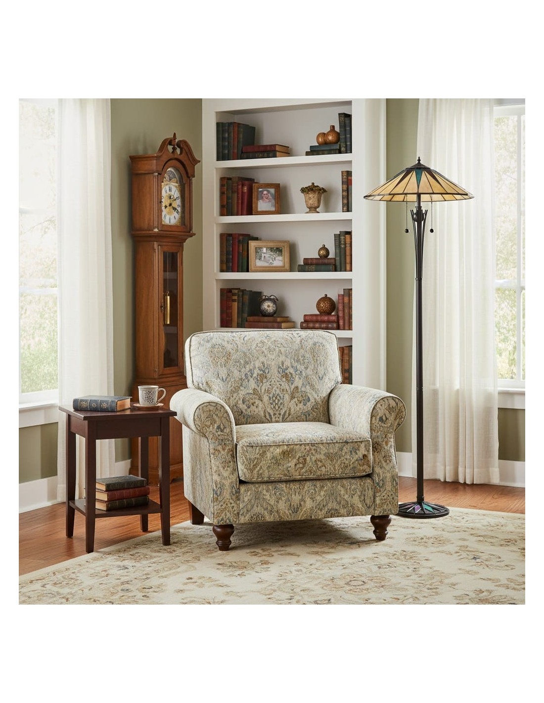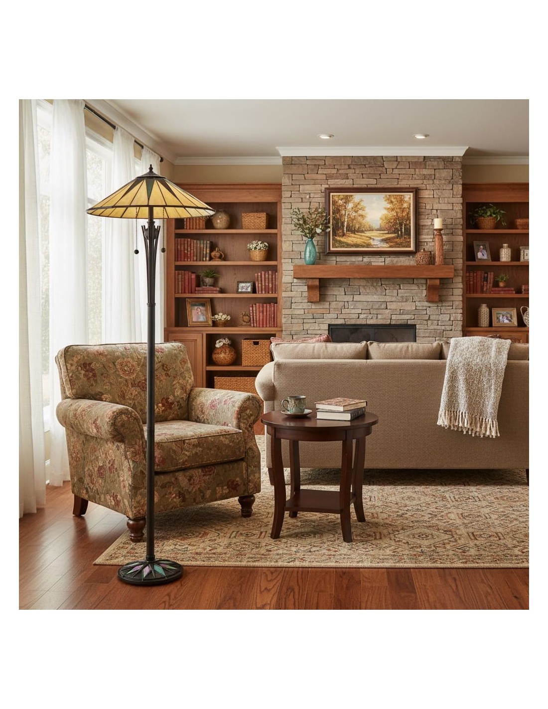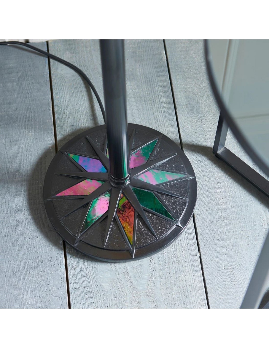 Inspirée des vitraux classiques, cette lampe est dotée d'un abat-jour à motif géométrique d'étoiles qui apporte profondeur et une lumière douce et chaleureuse à toute pièce. Elle associe un abat-jour en verre travaillé à une structure métallique raffinée, créant ainsi un élément décoratif intemporel pour les salons, les chambres ou les coins lecture.