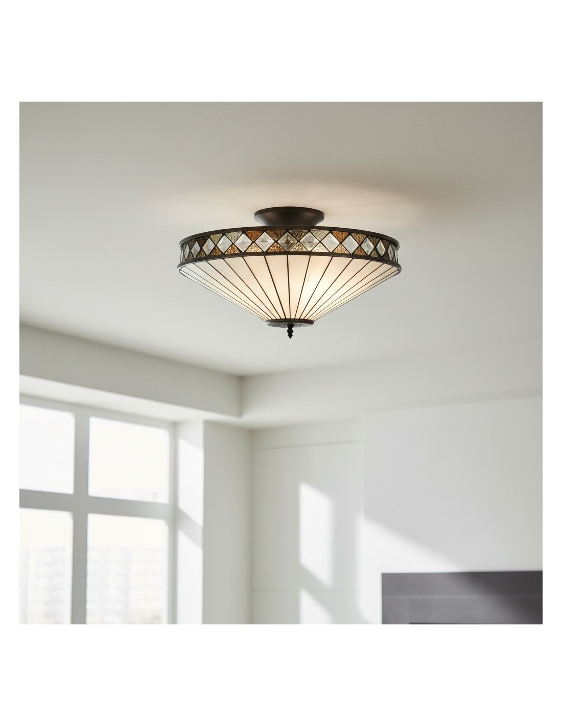 Le plafonnier semi-encastré Tiffany de TF Fargo allie la simplicité de l'Art déco à une silhouette discrète. Son abat-jour en verre opalescent et irisé change subtilement de couleur, créant une ambiance douce et feutrée. Idéal pour les salles à manger, les salons, les couloirs et les chambres.