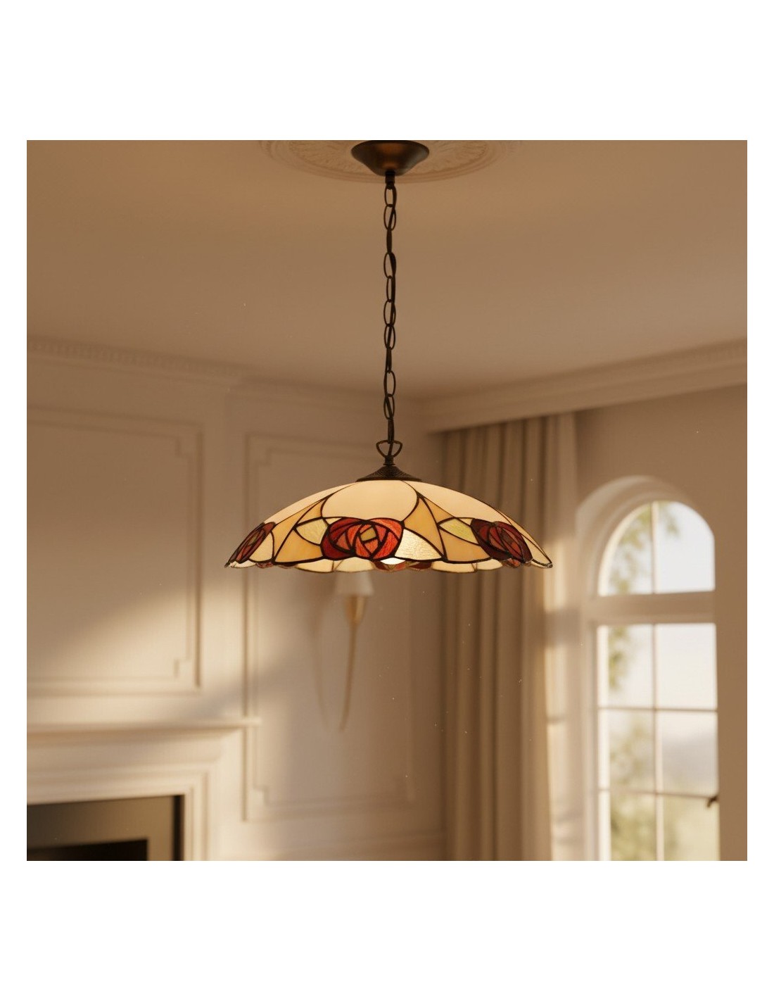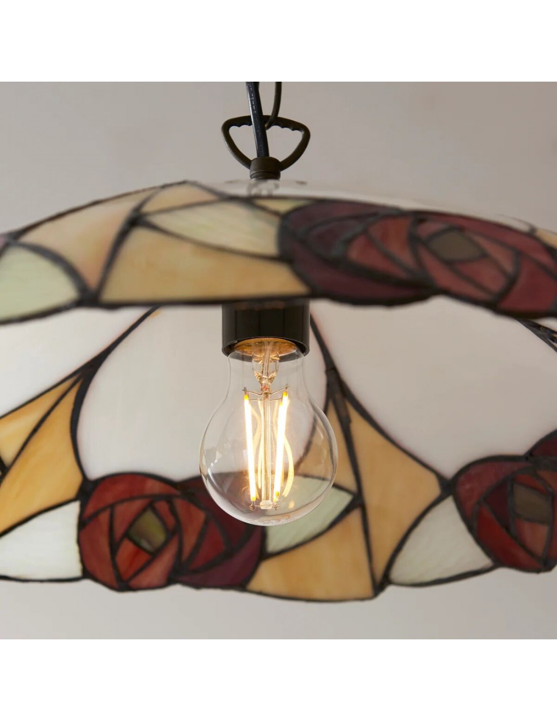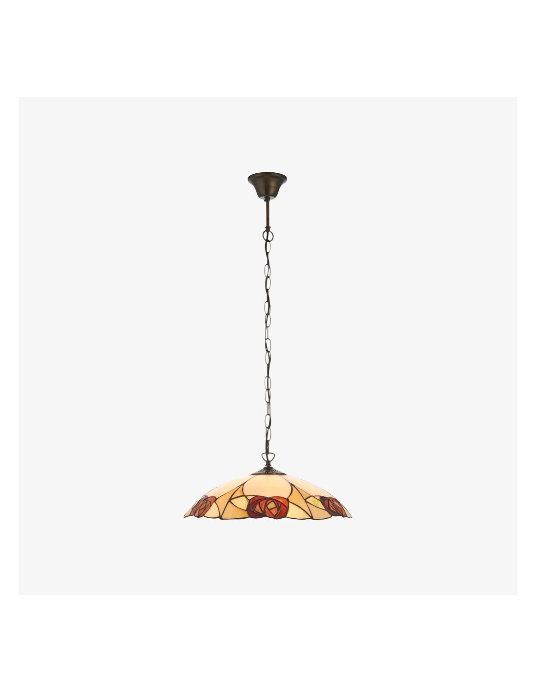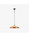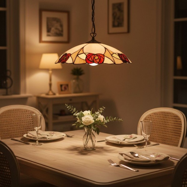 Un superbe pendentif de style Tiffany, alliant un abat-jour en verre soufflé à la main à une structure métallique sculptée pour un charme d'antan instantané. Ce grand pendentif arbore des motifs floraux et géométriques complexes, un bord festonné et une hauteur réglable ; idéal au-dessus d'une table à manger, d'un îlot de cuisine, d'un couloir ou d'une entrée commerciale.