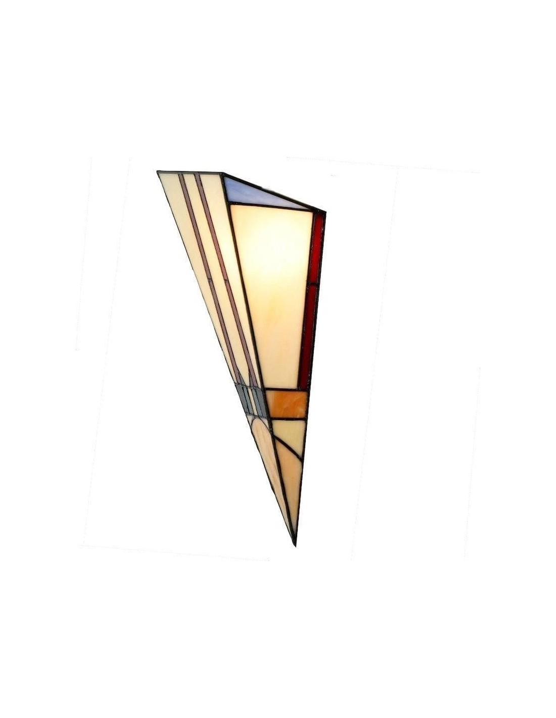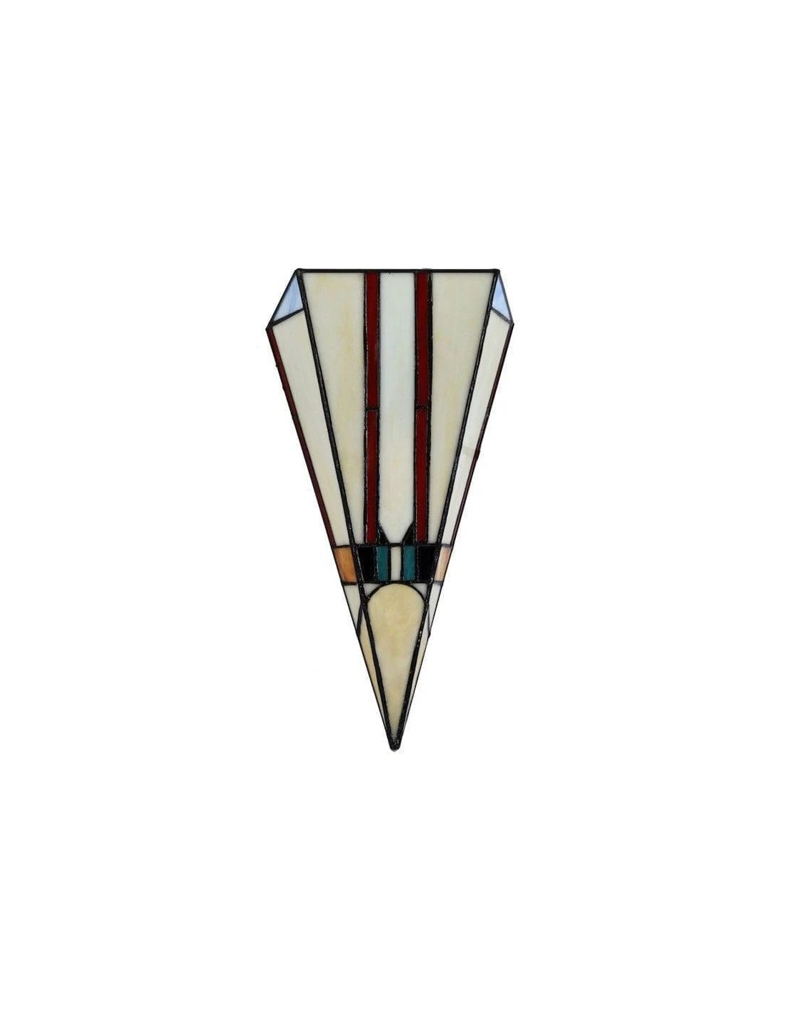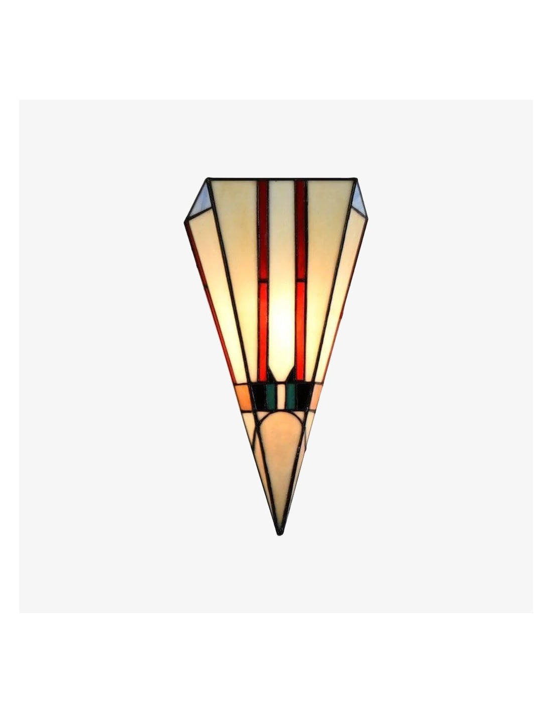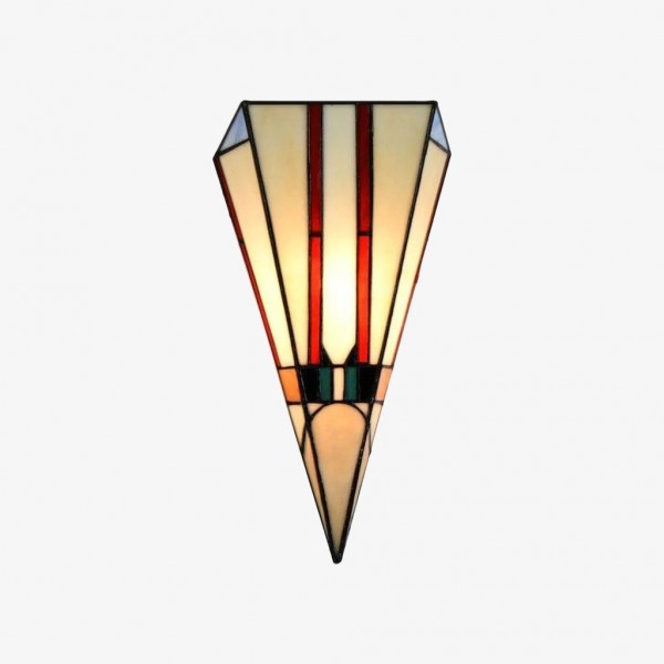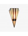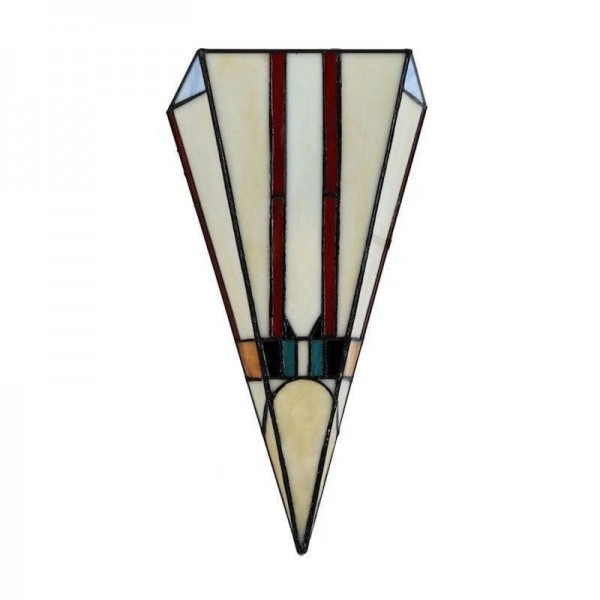 Cette applique murale est dotée d'un abat-jour en vitrail taillé à la main, aux tons chauds et riches, et aux lignes géométriques Art déco épurées. Idéale pour les couloirs, les chambres, les salons ou tout espace nécessitant une touche artistique.