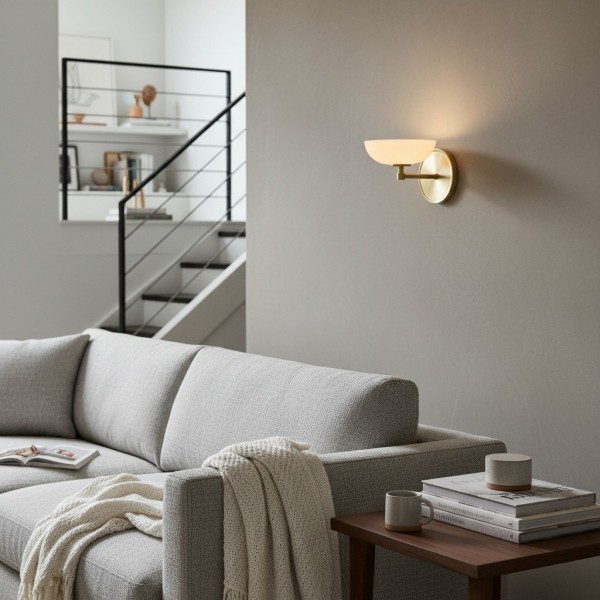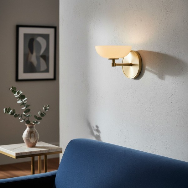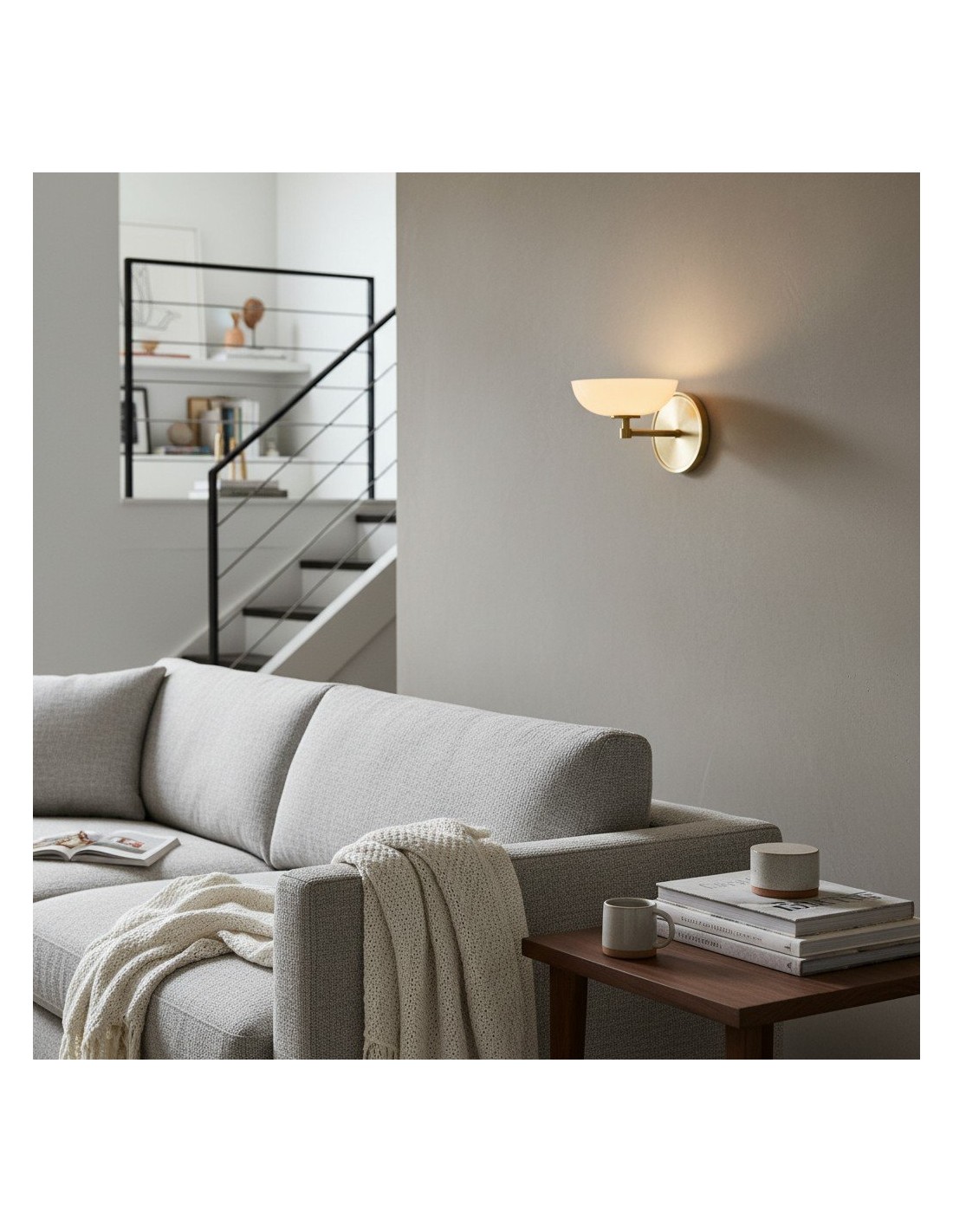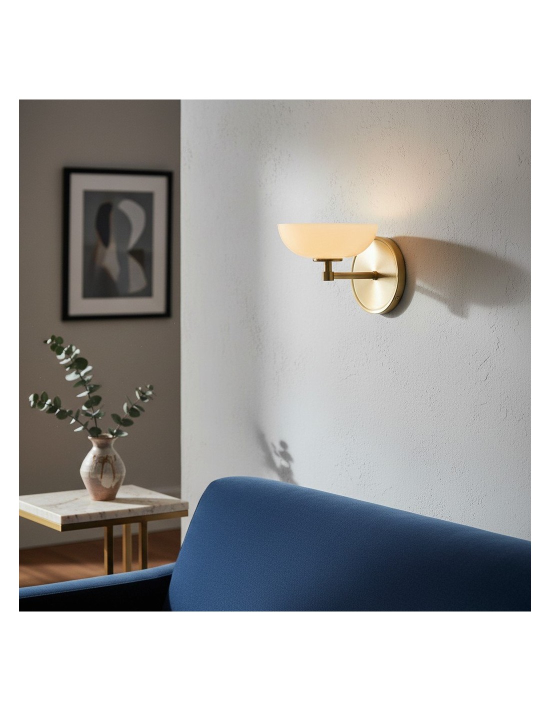 Cette applique murale moderne, dotée d'un abat-jour en verre sculptural et d'un élégant pied en métal, diffuse une lumière douce et tamisée, idéale pour les chambres, les couloirs ou les salles de bains. Son design compact et sa possibilité d'installation vers le haut ou vers le bas lui confèrent une grande flexibilité d'aménagement et s'adaptent à tous les espaces contemporains.