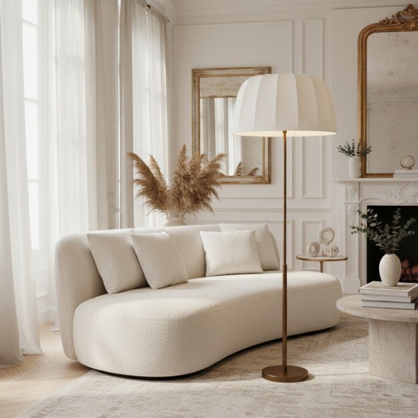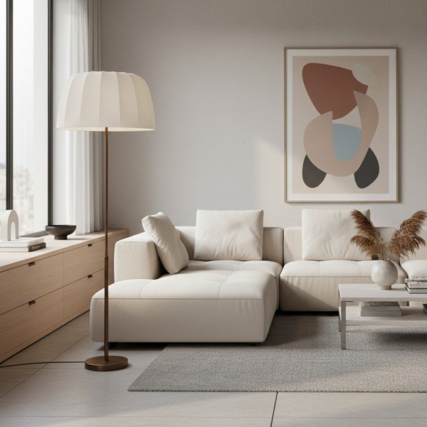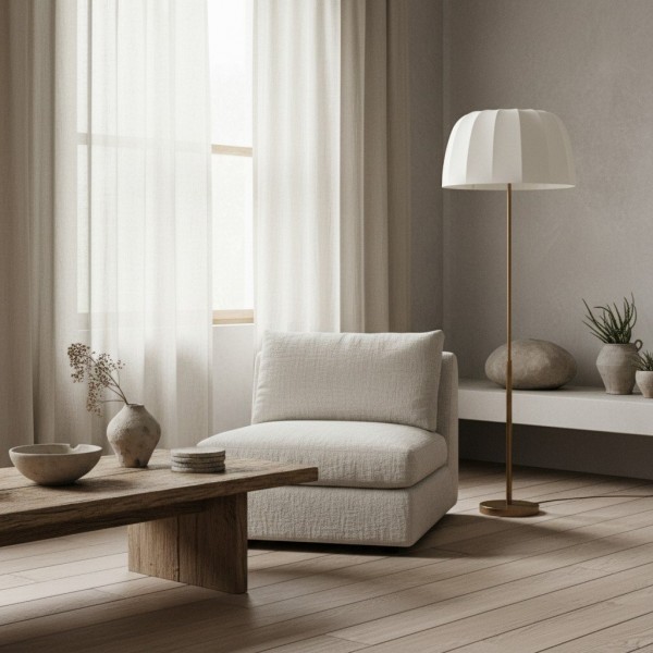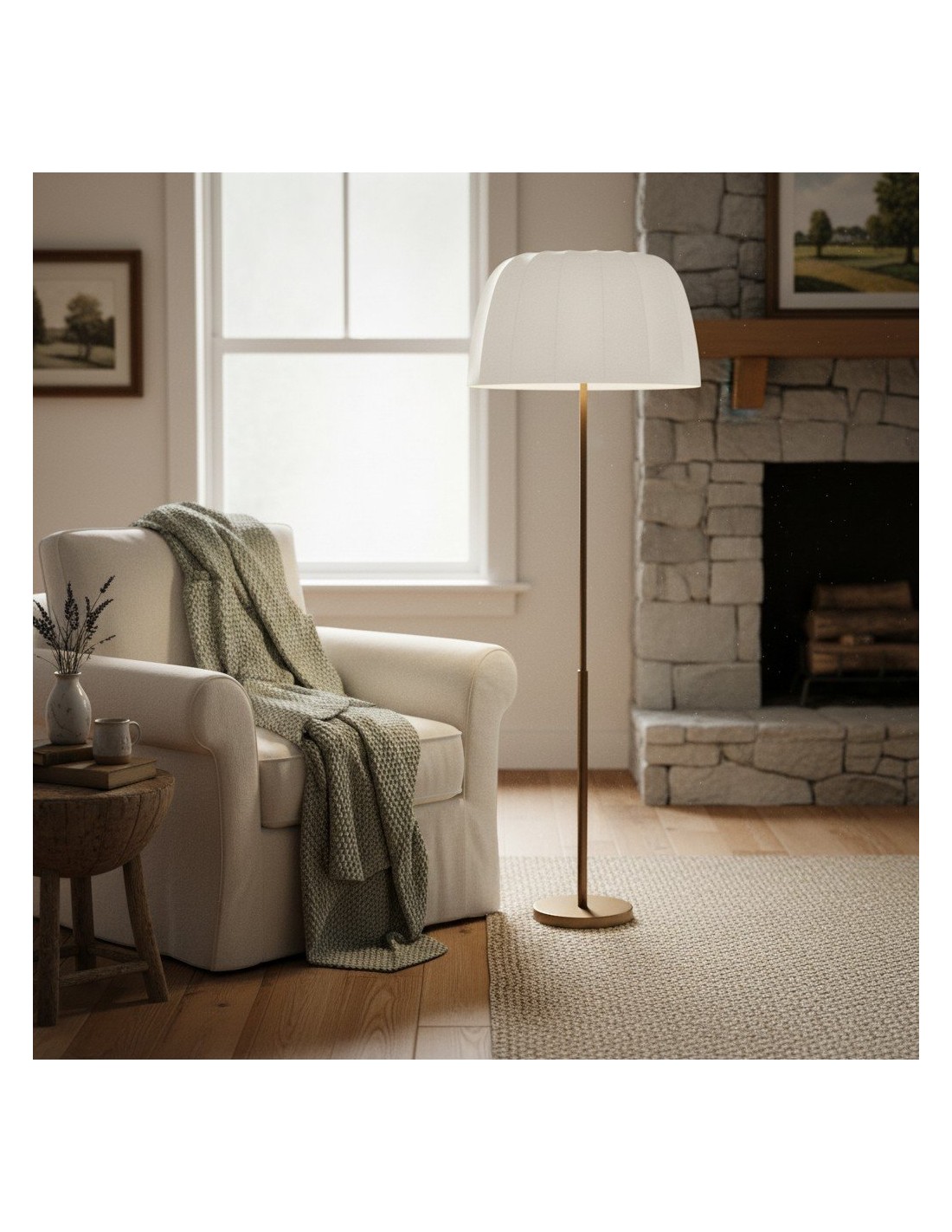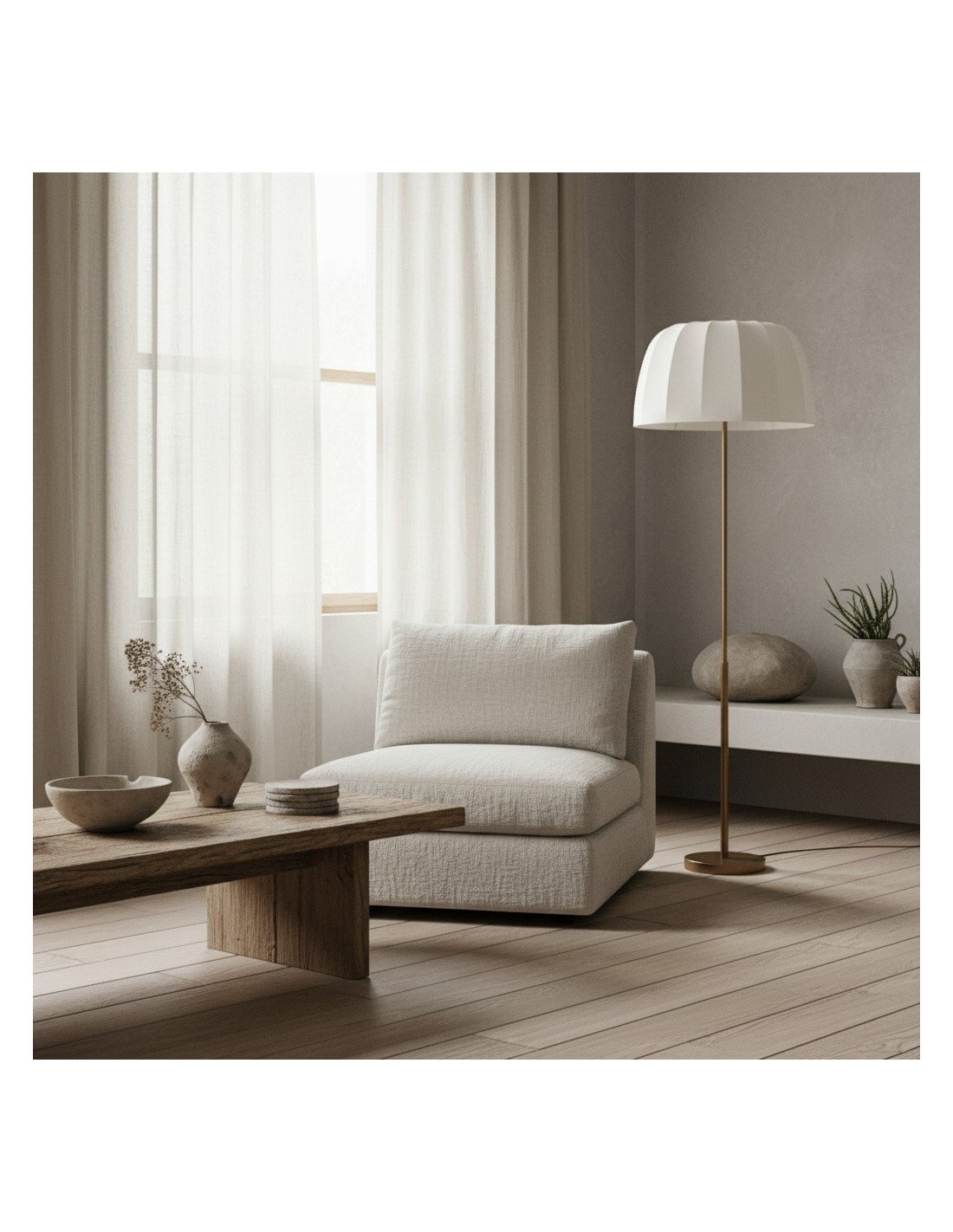 Le lampadaire Vellaro se distingue par son pied sculptural en laiton et son abat-jour en tissu doux. Son design minimaliste apporte une touche d'élégance moderne aux chambres, salons ou bureaux, diffusant une lumière douce et mettant en valeur les coins, les tables d'appoint ou les espaces de lecture.