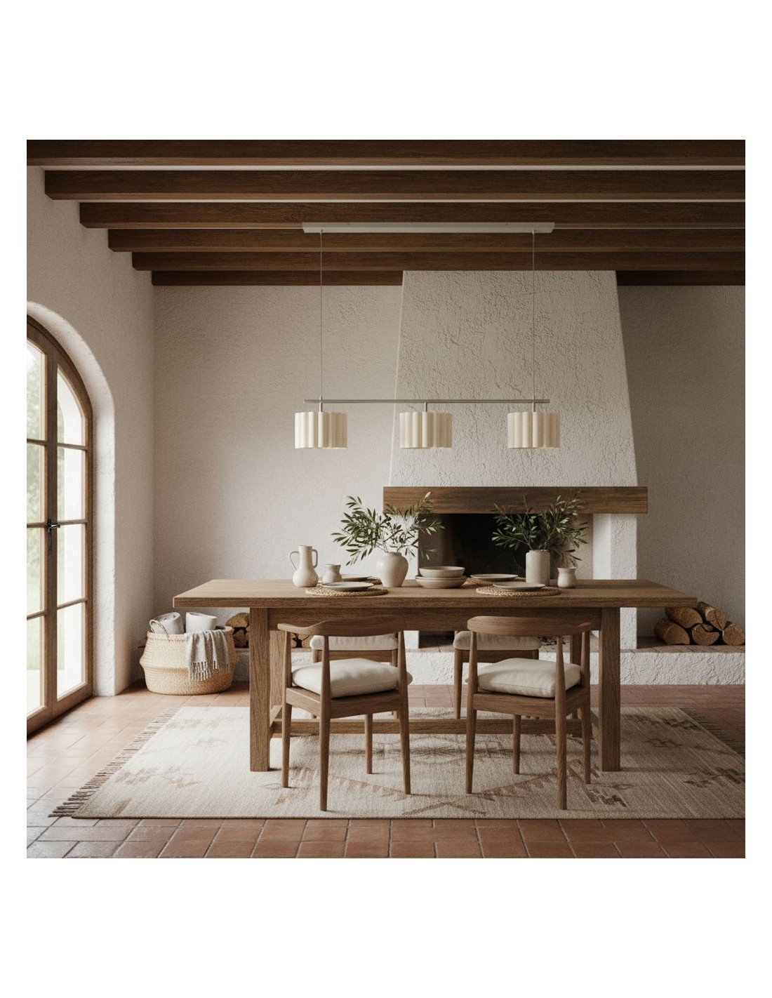 Sublimez votre intérieur avec la suspension linéaire Velura, qui allie esthétique et fonctionnalité. Son abat-jour en lin beige clair diffuse une lumière chaleureuse et agréable tout en projetant des motifs artistiques sur vos murs. Dotée d'un câble gainé de textile et d'une structure en métal revêtu, elle est conçue pour durer.