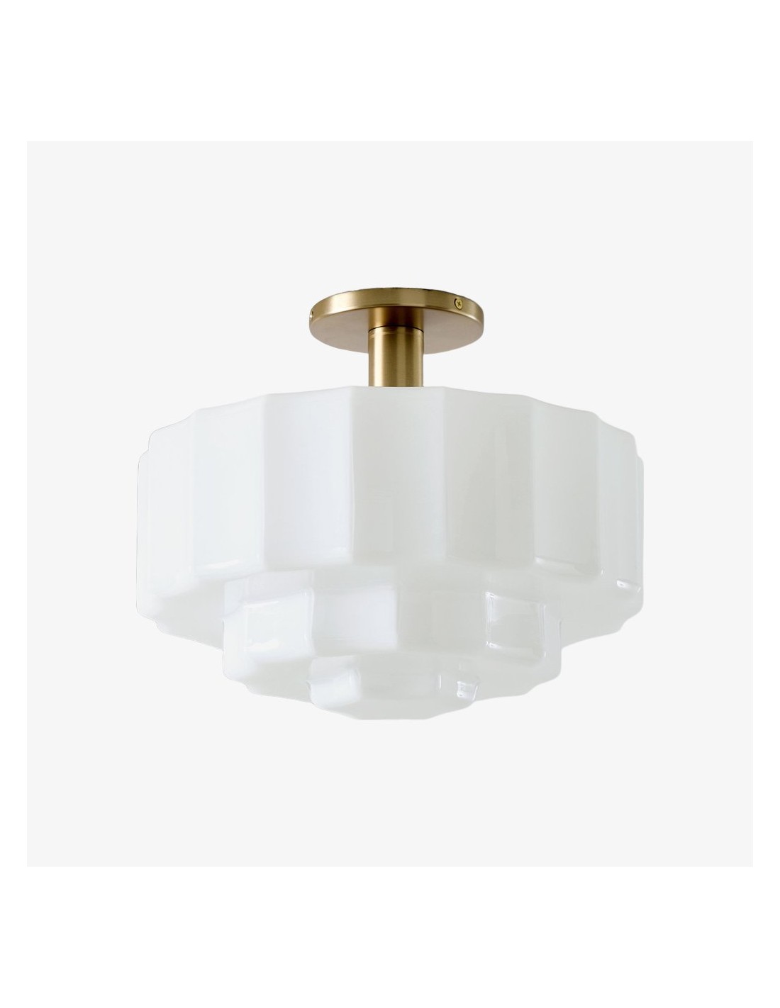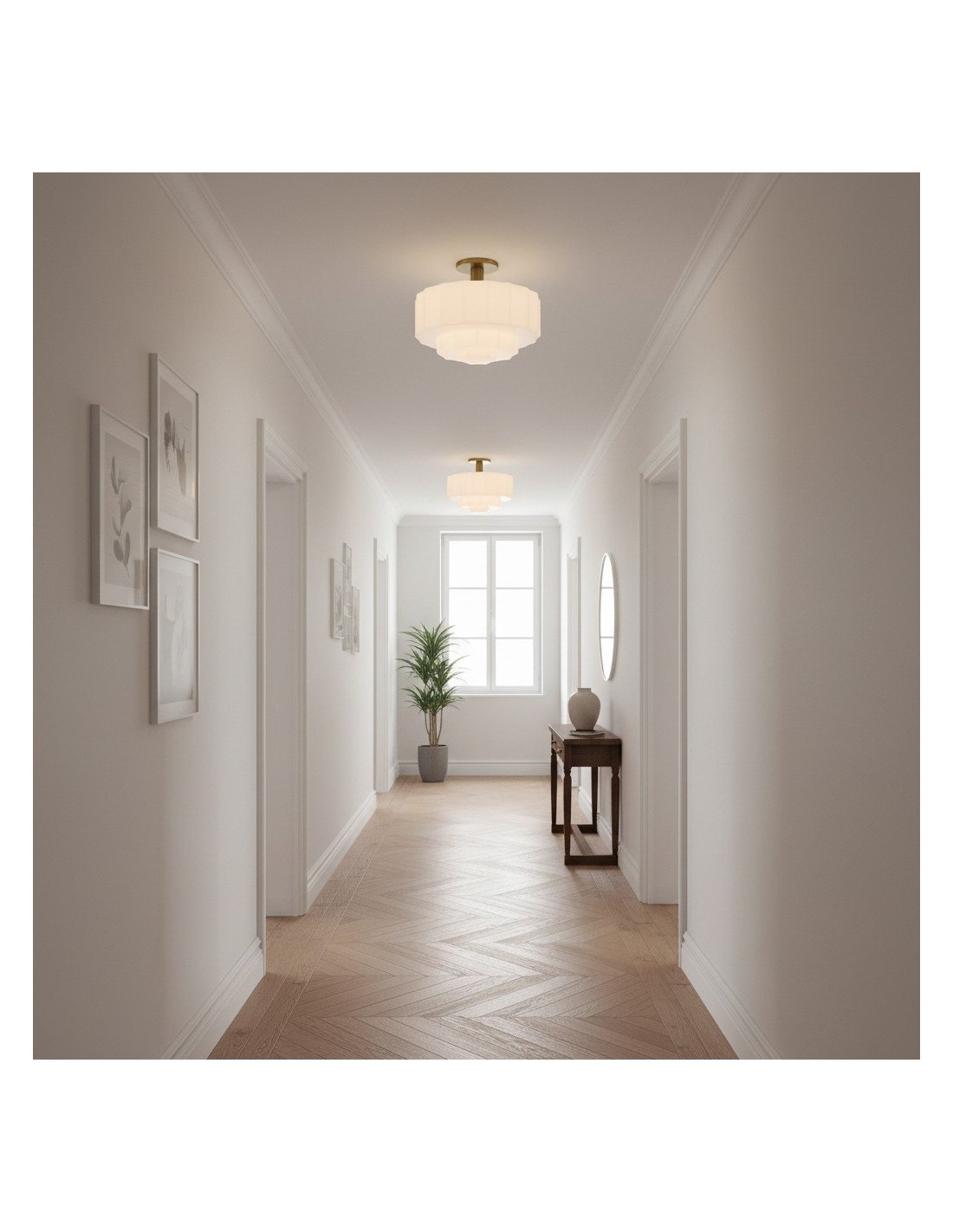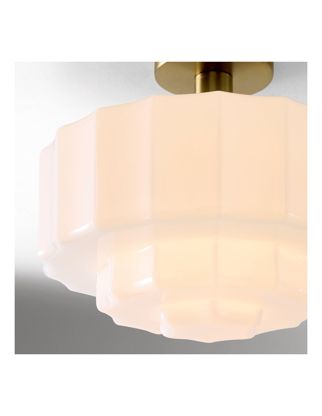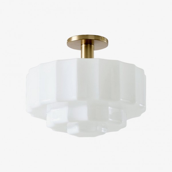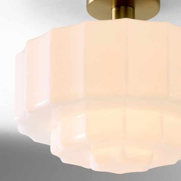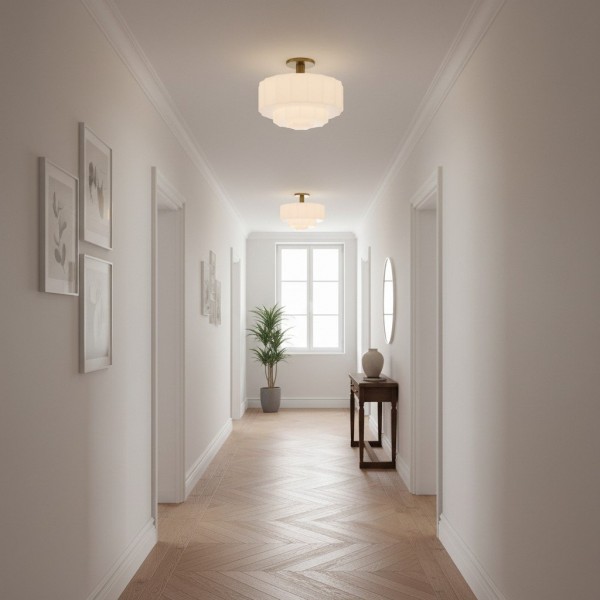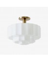 Ce plafonnier encastré est doté d'un abat-jour en verre d'inspiration Art déco, aux détails sculptés et facettés qui apportent profondeur et mouvement au plafond. Sa lumière chaude et diffuse sublime les chambres, les entrées et les pièces à vivre, tandis que sa structure métallique et ses lignes raffinées confèrent une élégance moderne et intemporelle à tout intérieur.