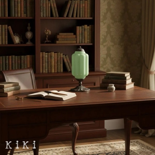 Cette lampe de table vintage en verre apporte une élégance sculpturale et une ambiance chaleureuse et accueillante à tout intérieur. Son abat-jour en verre diffuse une lumière douce, créant une atmosphère cosy au charme intemporel.