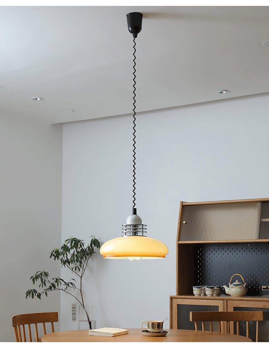 La lampe suspendue est une pièce maîtresse pour tout espace de vie. Son abat-jour en forme de globe en verre, caractérisé par son bord beige blanc orange, produit une diffusion de lumière subtile et brillante, offrant un éclairage sans éblouissement à n'importe quel espace. Décoration idéale, cette lampe est l'équilibre parfait entre facilité d'utilisation et sophistication.