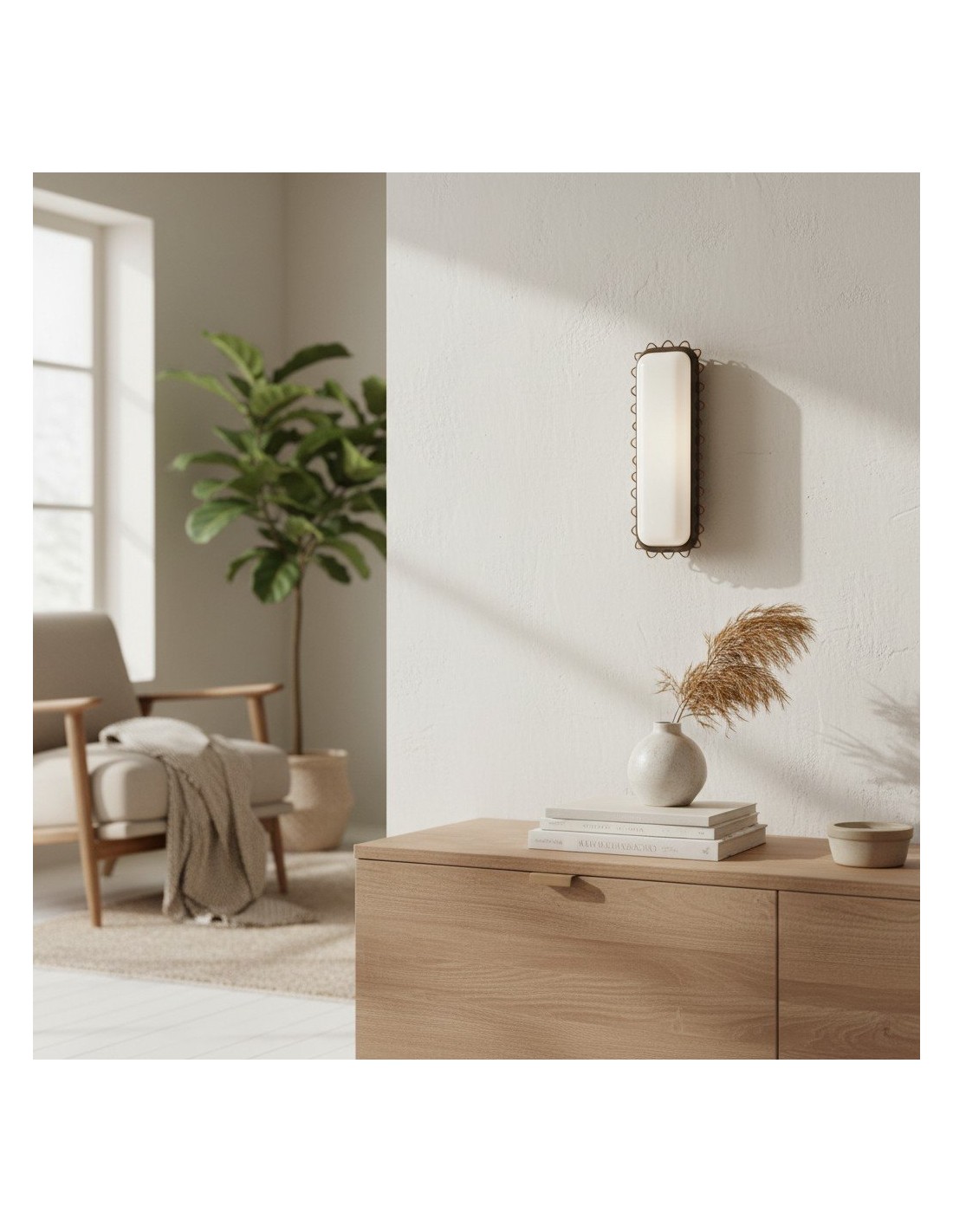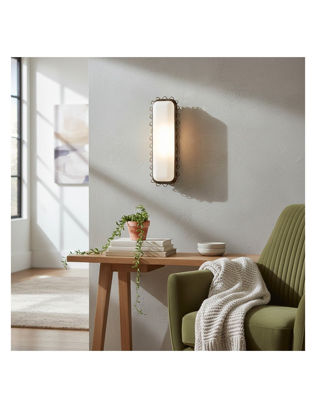 Apportez une touche à la fois ludique et raffinée à vos murs avec cette applique. Composée d'un haut cylindre en verre opale encadré d'une structure métallique aux lignes ondulées, elle allie structure et fantaisie. Cette applique polyvalente s'intègre parfaitement dans les salles de bains modernes, les entrées, les couloirs ou les salles à manger, diffusant une lumière douce et homogène.