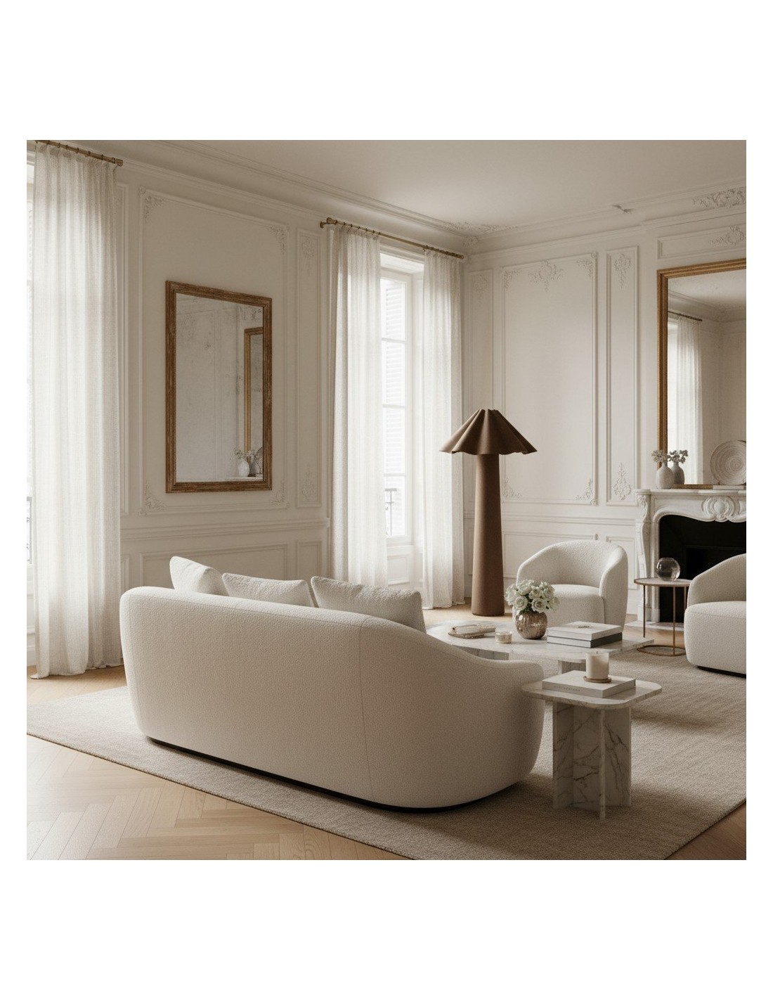 Sublimez votre intérieur avec le lampadaire Weavara, une fusion saisissante de formes sculpturales et de raffinement moderne. Ce lampadaire d'exception se distingue par sa silhouette élancée et élégamment fuselée, son pied imposant et son abat-jour à la douce lueur qui diffuse une lumière chaude, créant une ambiance chaleureuse dans n'importe quelle pièce.
