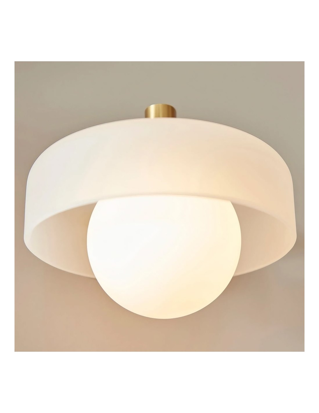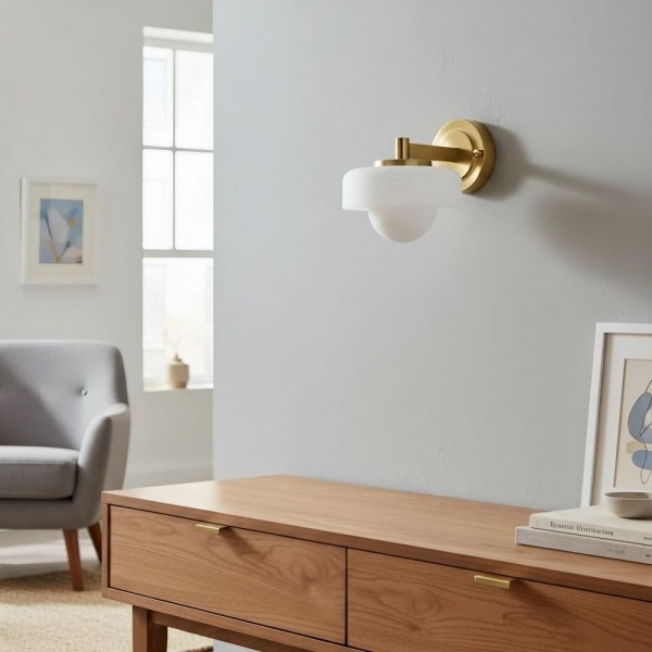 Cette applique murale rétro en forme de globe présente une structure en verre opale et dépoli superposé, créant une lumière chaude et diffuse empreinte d'un charme raffiné du milieu du siècle. Sa forme sculpturale et sa finition inspirée du laiton apportent une touche d'élégance aux couloirs, chambres et pièces à vivre, offrant un éclairage d'ambiance doux qui sublime tout intérieur.